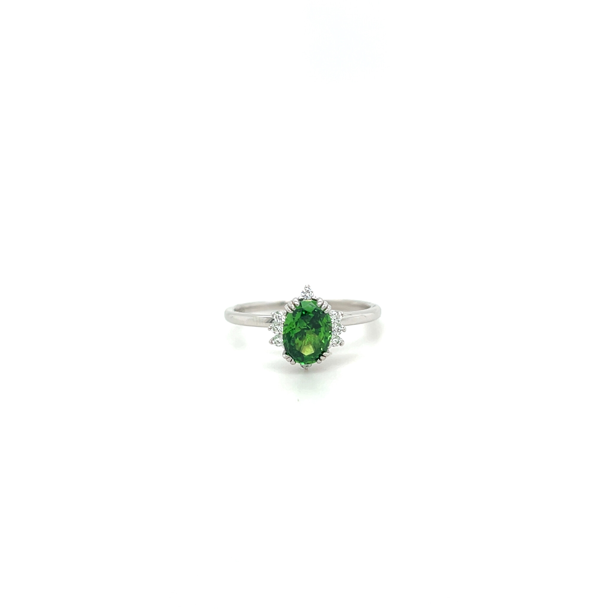 Ring gladde scheen en groene steen met kleine zirkonia's