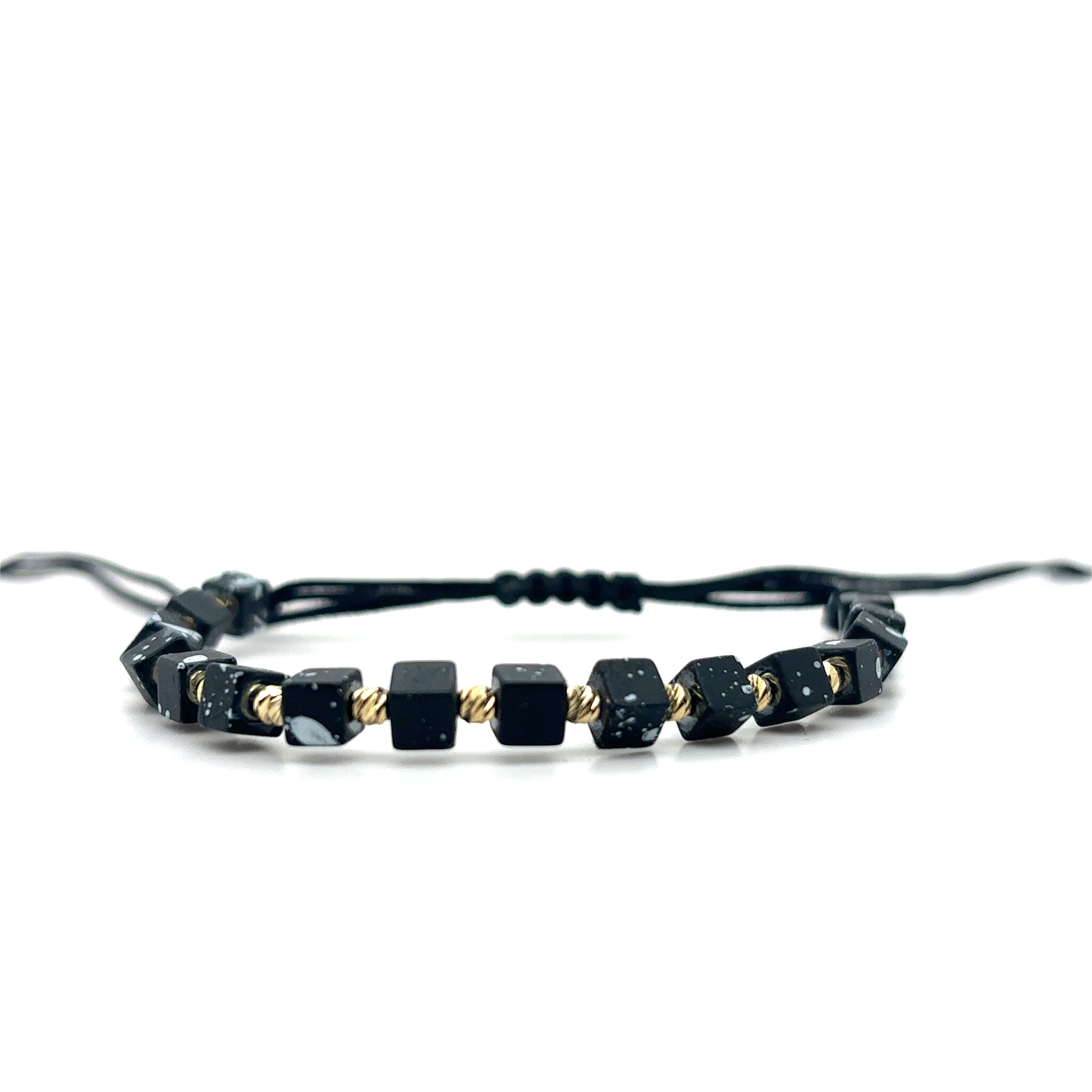 Armband blackline matte marmer vierkante kralen diamond cut balletjes