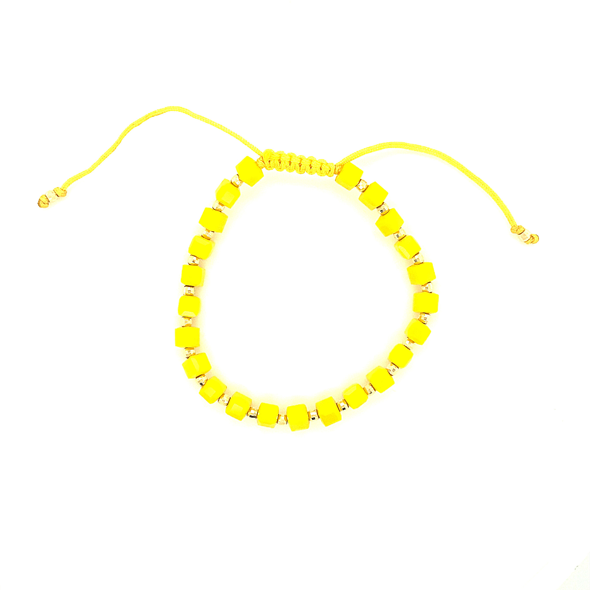 Armband Colorline gouden balletjes met vierkante gekleurde kralen