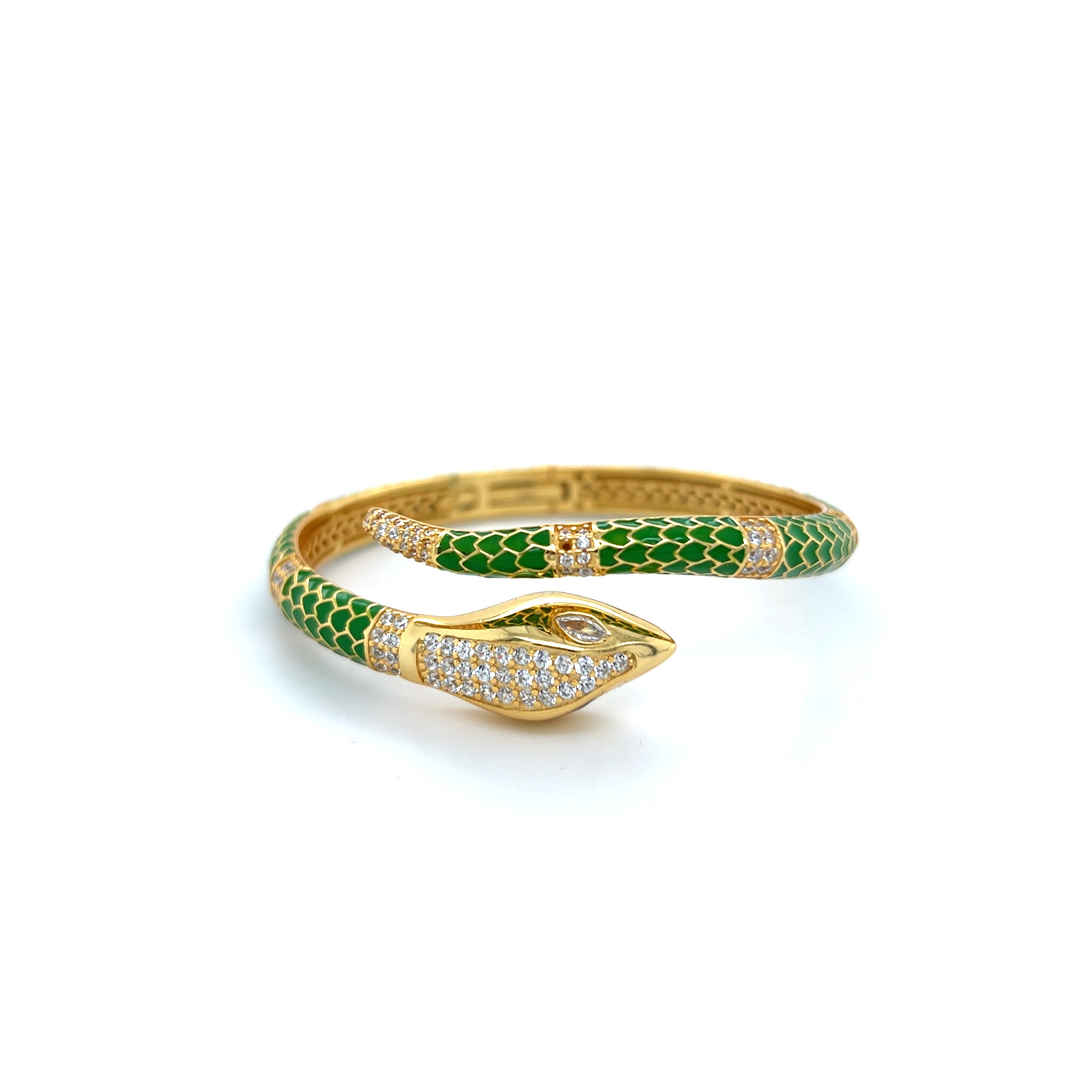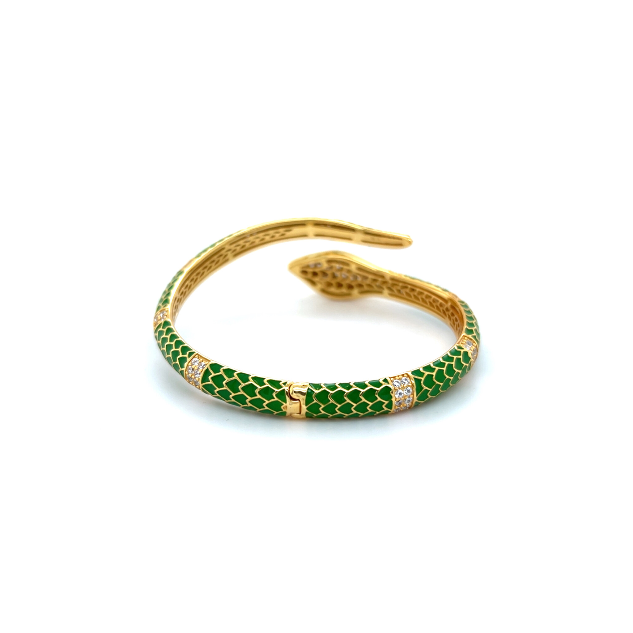 Armband vast goldplated met slang en groene details