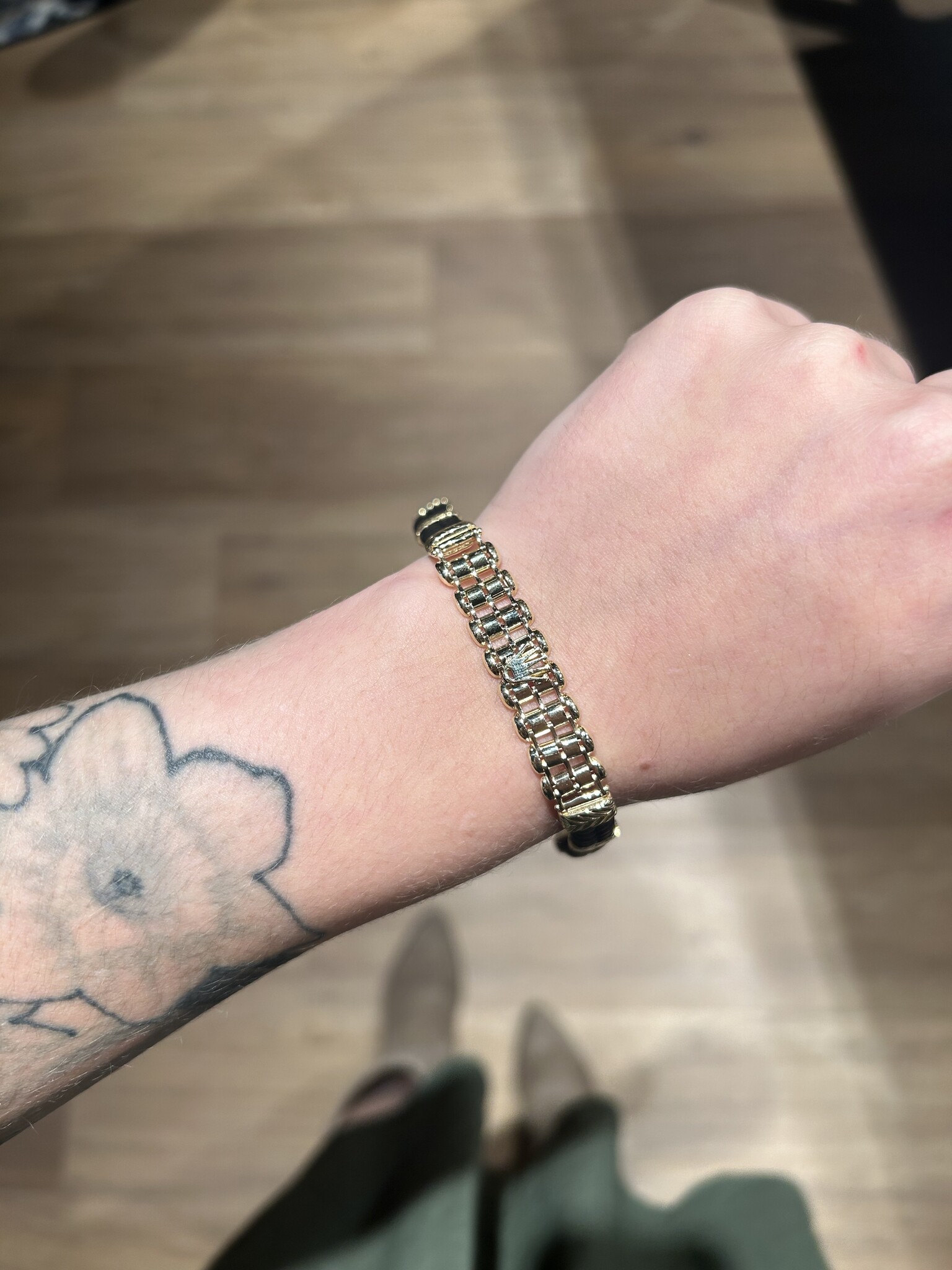 Armband zwart gevlochten koord met gouden schakelstuk en kroontje
