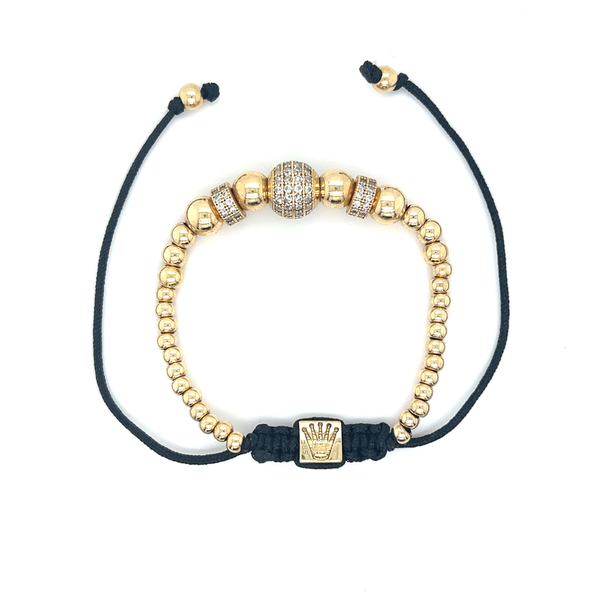 Armband zwart koord met clean balletjes en elementen bezet met zirkonia's