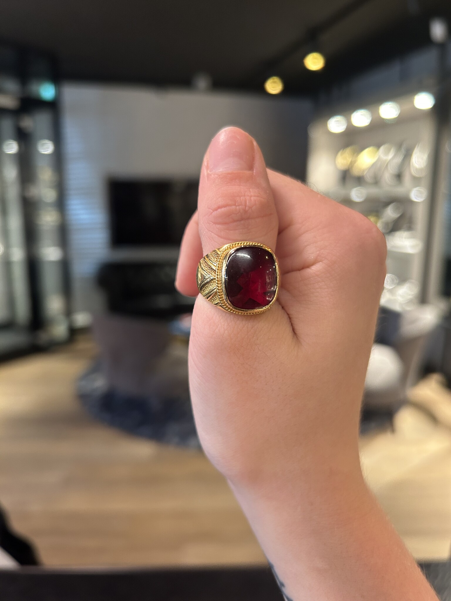Ring met grote rode steen