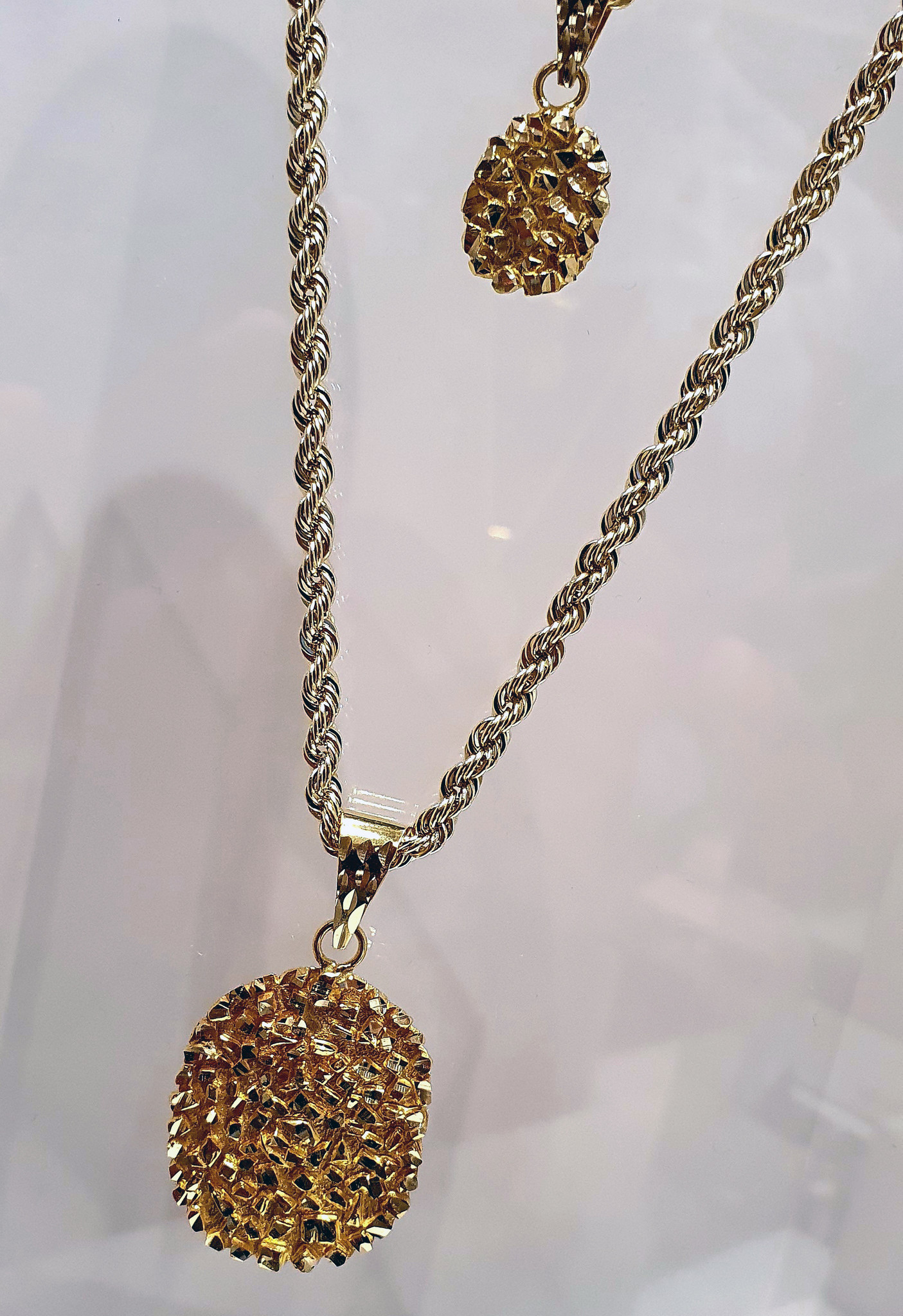 De rope chain is er in 2 varianten; massief en hol. De benaming zegt eigenlijk al genoeg. De holle variant van de rope chain is hol van binnen waardoor de schakels lichter zijn. De massieve rope chain is gemaakt van massief goud en daardoor vele malen zwaarder. Even een voorbeeldje; een 2.5 mm rope chain van 65 cm weegt in de holle variant 4.9 gram. De massieve versie van precies dezelfde ketting weegt maar liefst 16.3 gram. Welke is dus goedkoper? Juist ja de holle! Maar welke is sterker en steviger? Die wedstrijd gaat de massieve beslist winnen. Welke is dan het beste?! Dat is echt aan je zelf. Op het oog zie je geen verschil tussen beide kettingen. Het enige verschil zit hem echt in het gewicht. Veel van onze klanten willen een ketting met een beetje gewicht. Voor hen is de massieve variant perfect. De holle variant is weer erg populair met een leuk hangertje. Een compleet setje met een holle rope chain is vaak nog goedkoper dan een enkele massieve rope. Kortom; it’s up to you! Sieraden zijn altijd een persoonlijke keuze. Ook de keuze tussen massief en hol is persoonlijk en afhankelijk van de wensen en eisen die jij hebt.