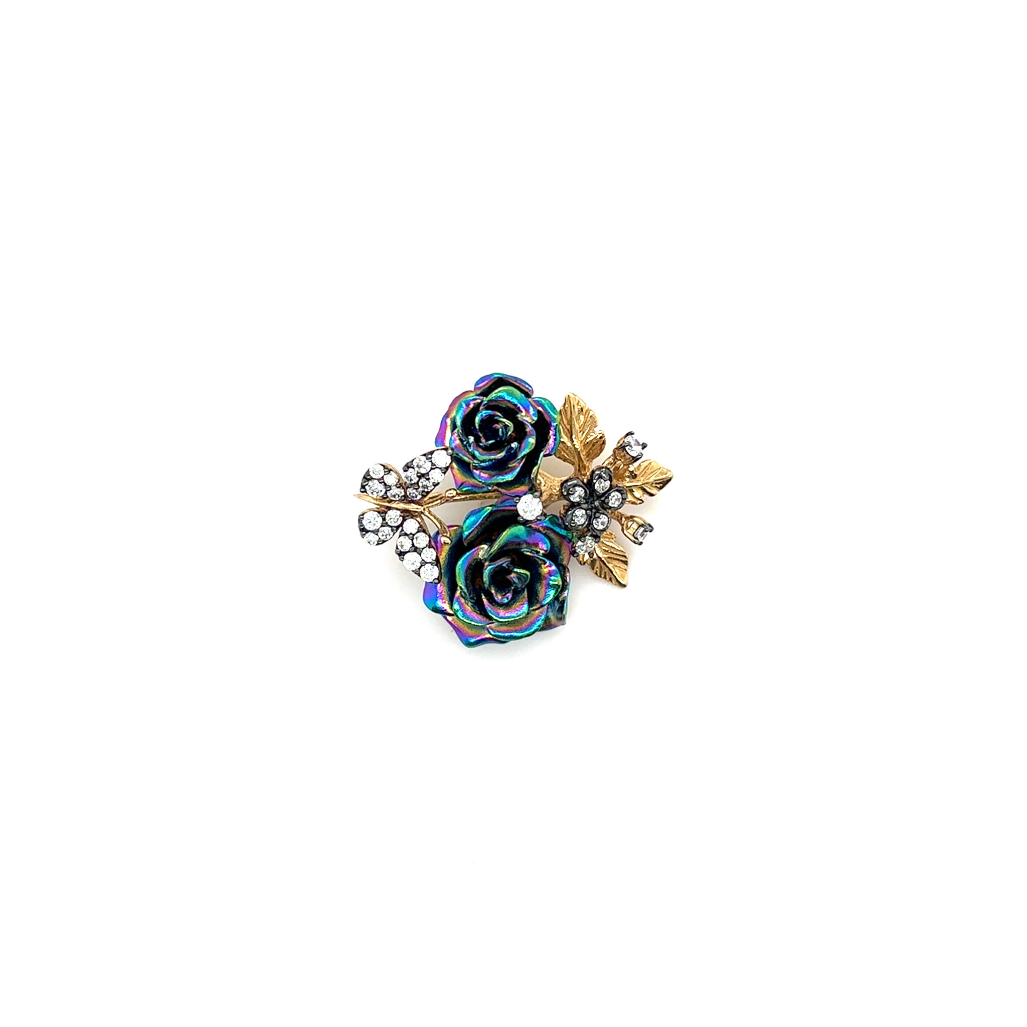 Hanger gold-plated met bloemen, takken en zirkonia steen