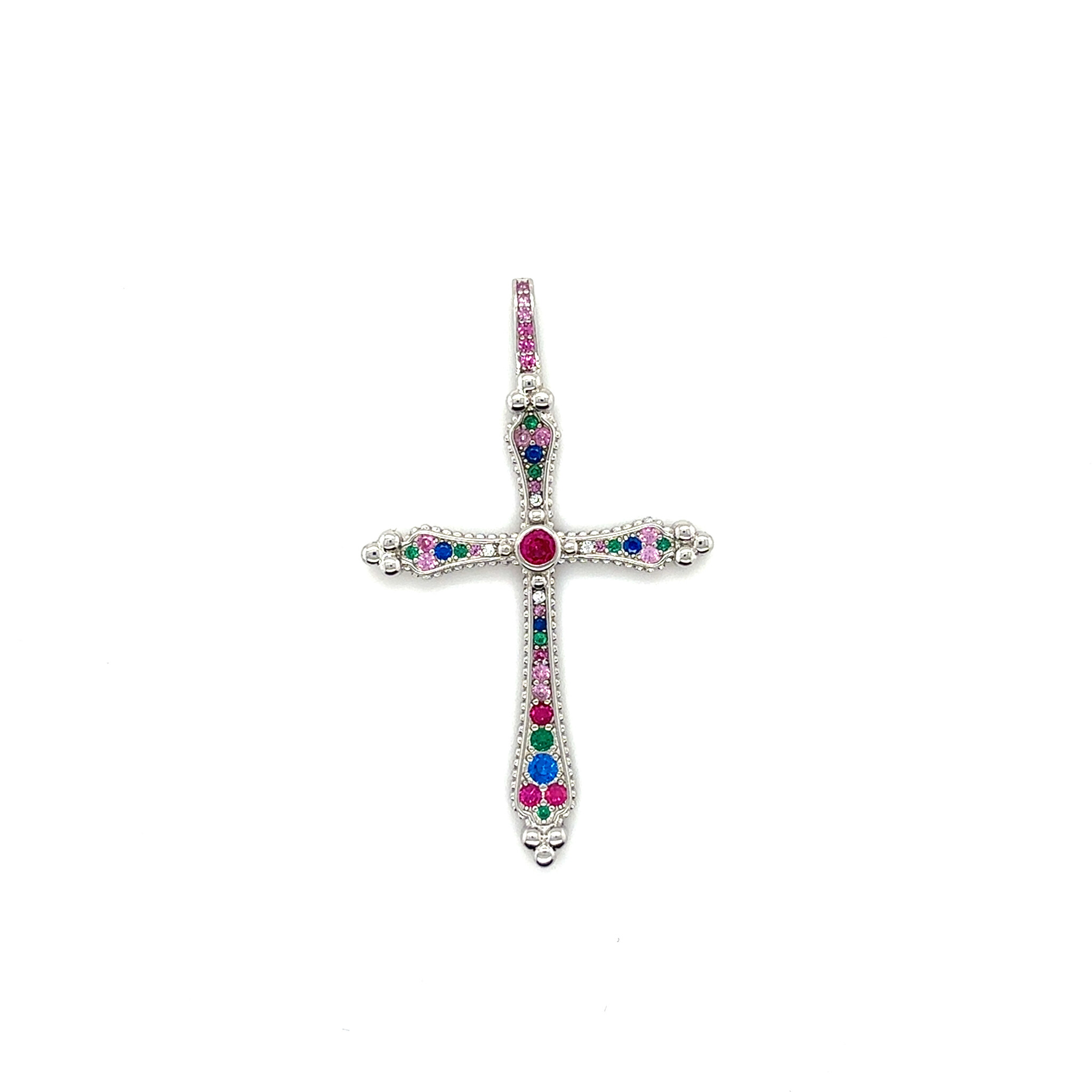 Hanger kruis met gekleurde zirkonia's