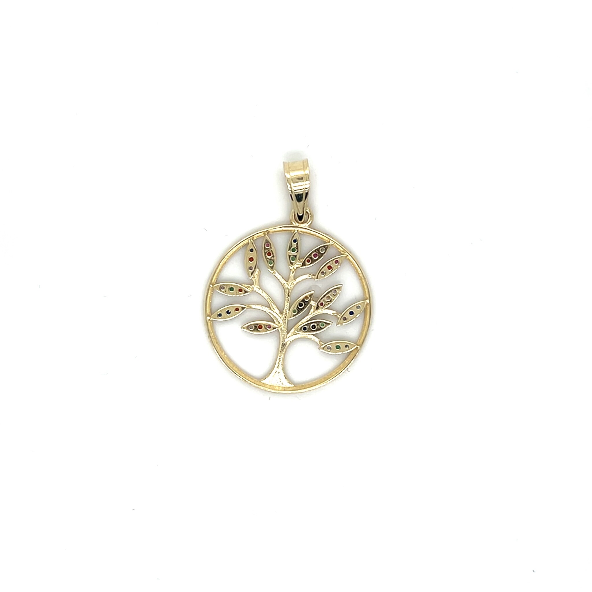Hanger levensboom met omlijning en gekleurde zirkonia's