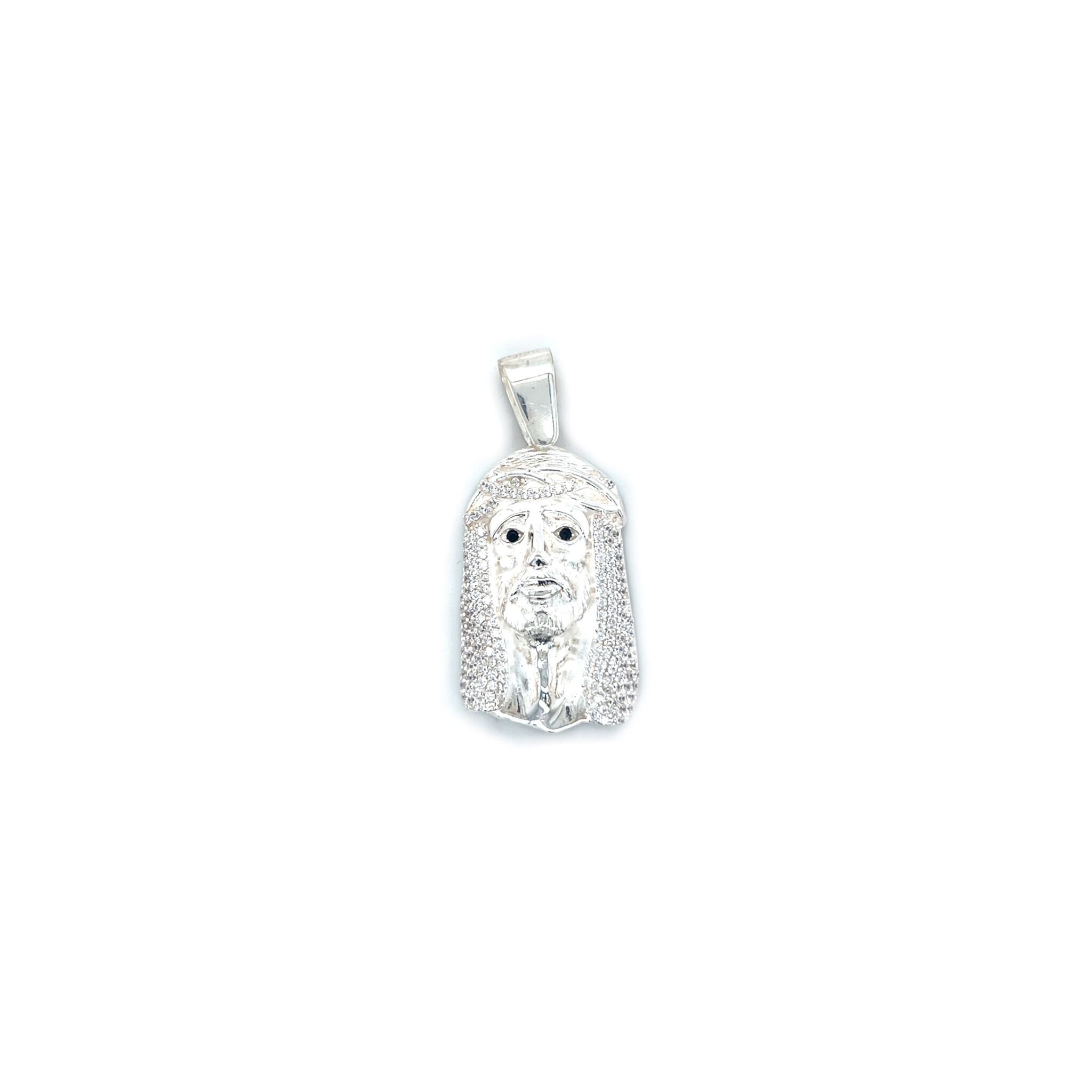 Hanger zilver Jezus portret met witte zirkonia's en zwarte zirkonia's als ogen
