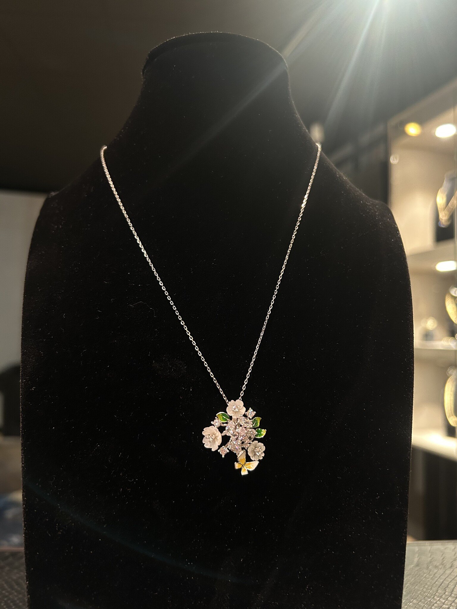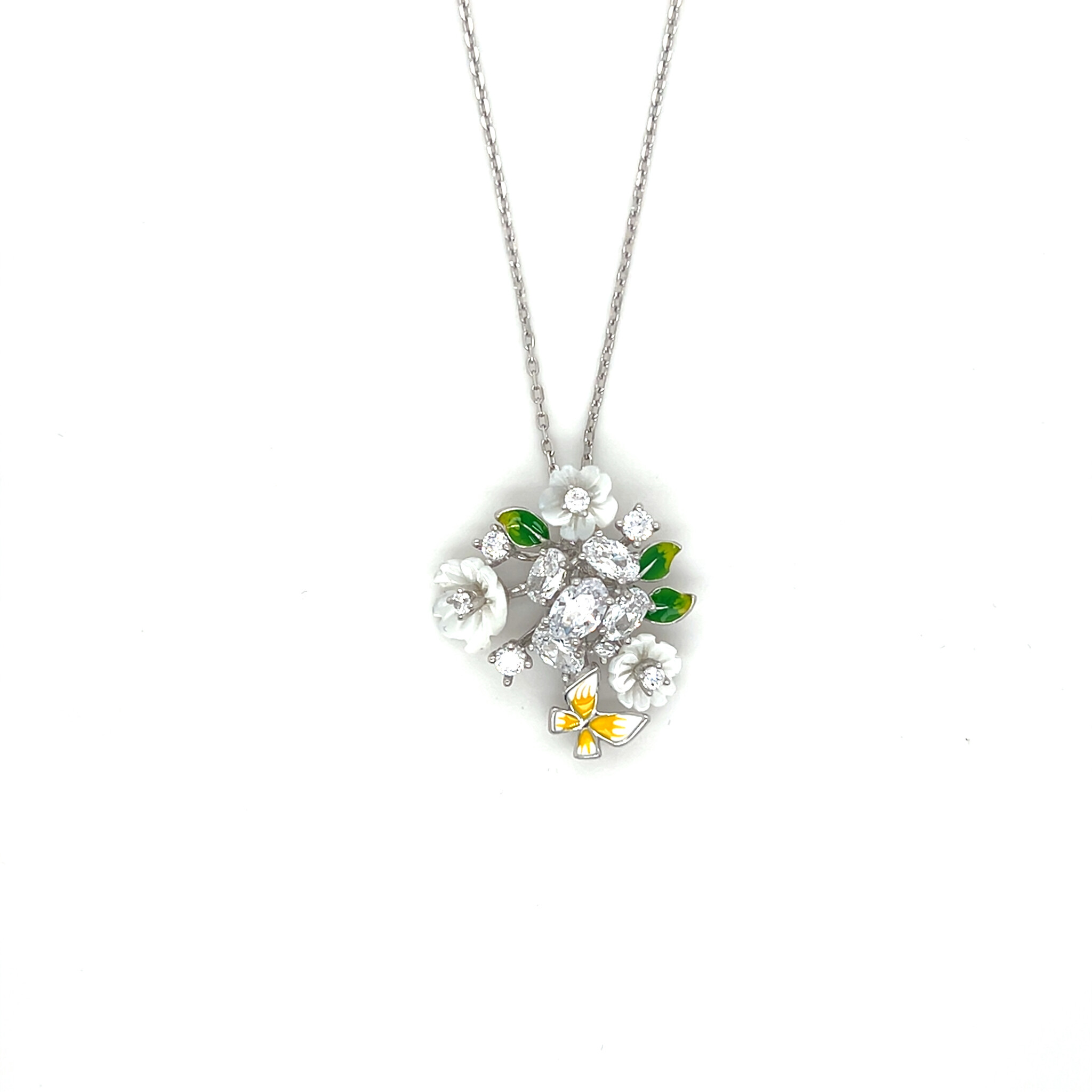 Ketting ankerschakel met hanger bloem, zirkonia en vlinder