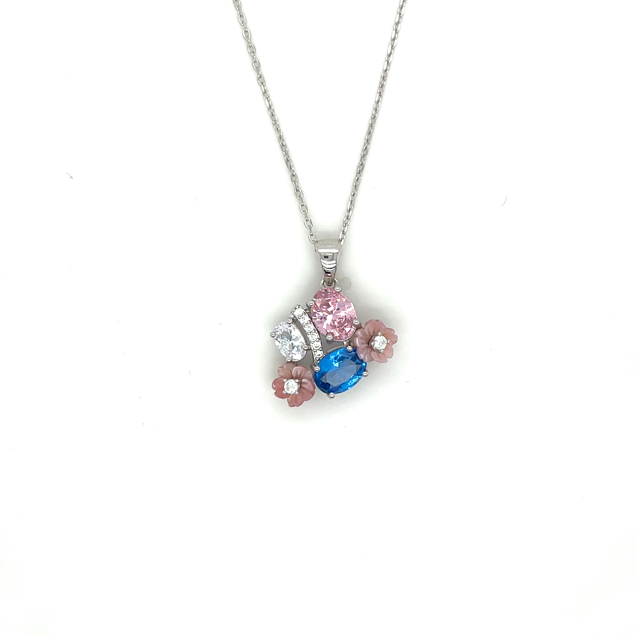 Ketting ankerschakel met kleurrijke fantasie hanger met zirkonia