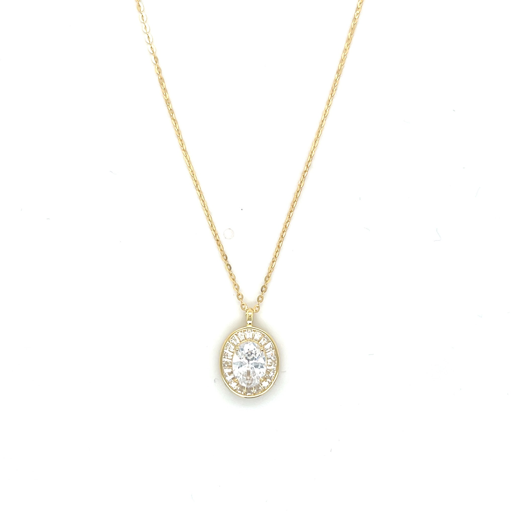 Ketting gold plated of zilver met vaste ovale zirkonia hanger