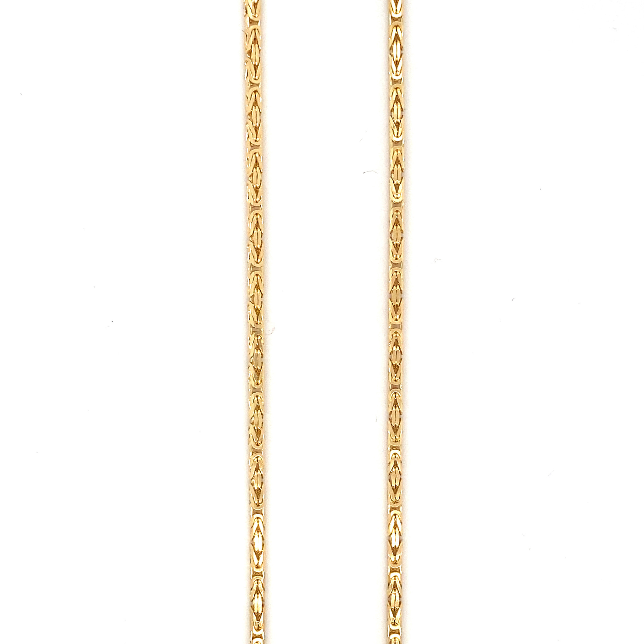 De 1.8 mm koningsketting is een subtiele toevoeging aan je outfit. Doordat de schakel al super lang populair is, is het ook een hele herkenbare ketting. De fijne schakels zijn mooi egaal wat deze ketting ideaal maakt om te combineren met een leuke hanger.