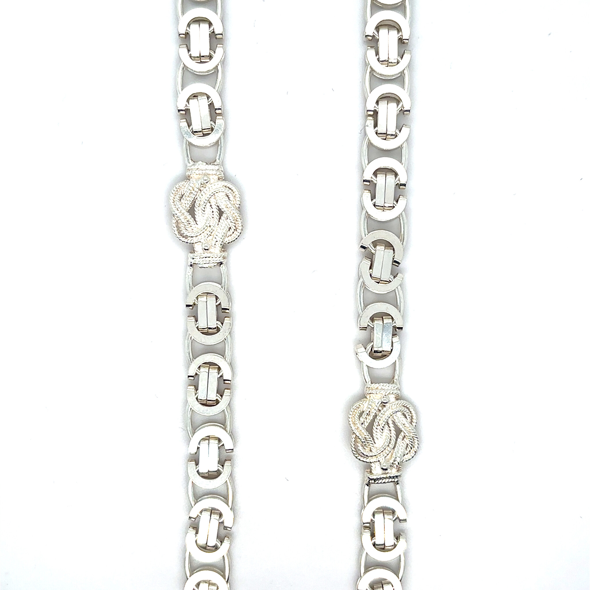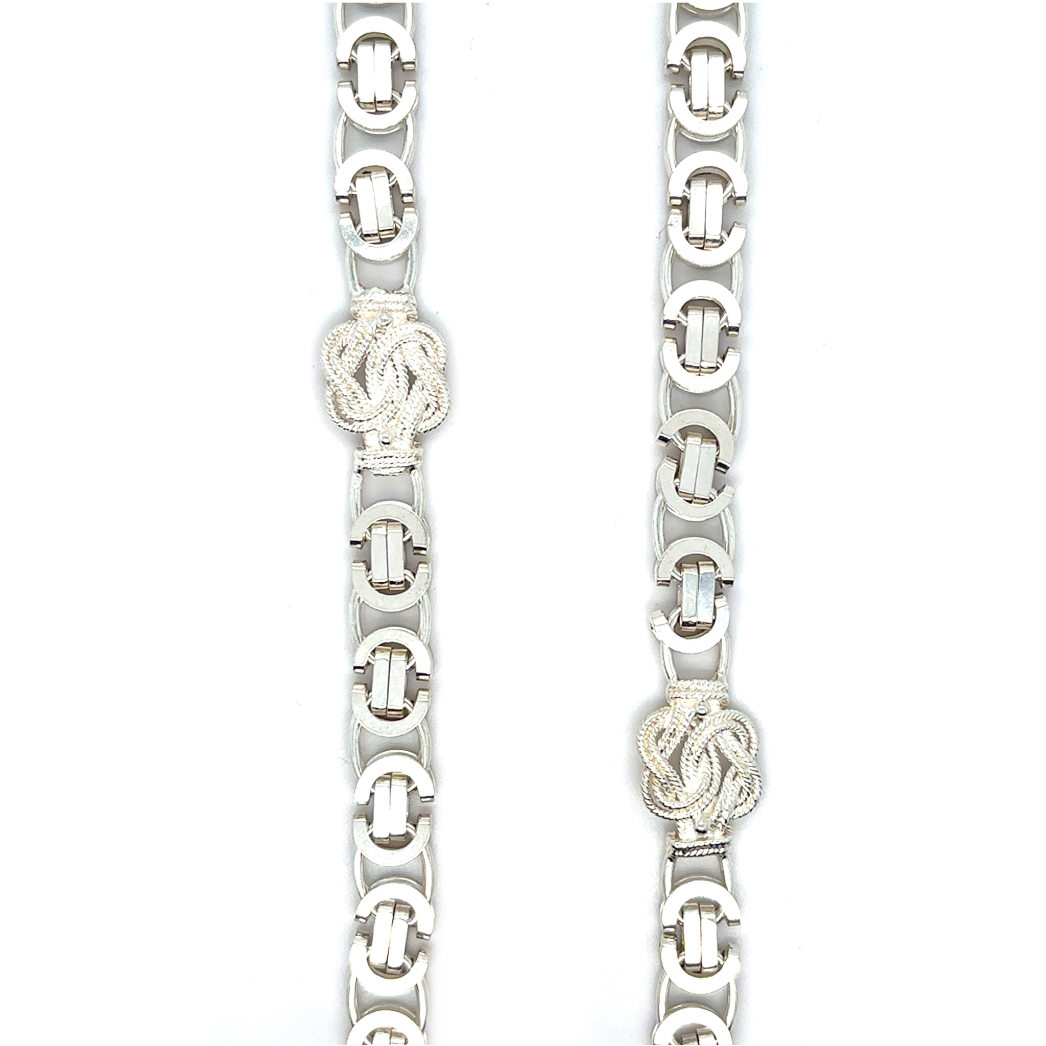 Ketting platte koningsschakel met mattenklopper zilver 5+7 mm