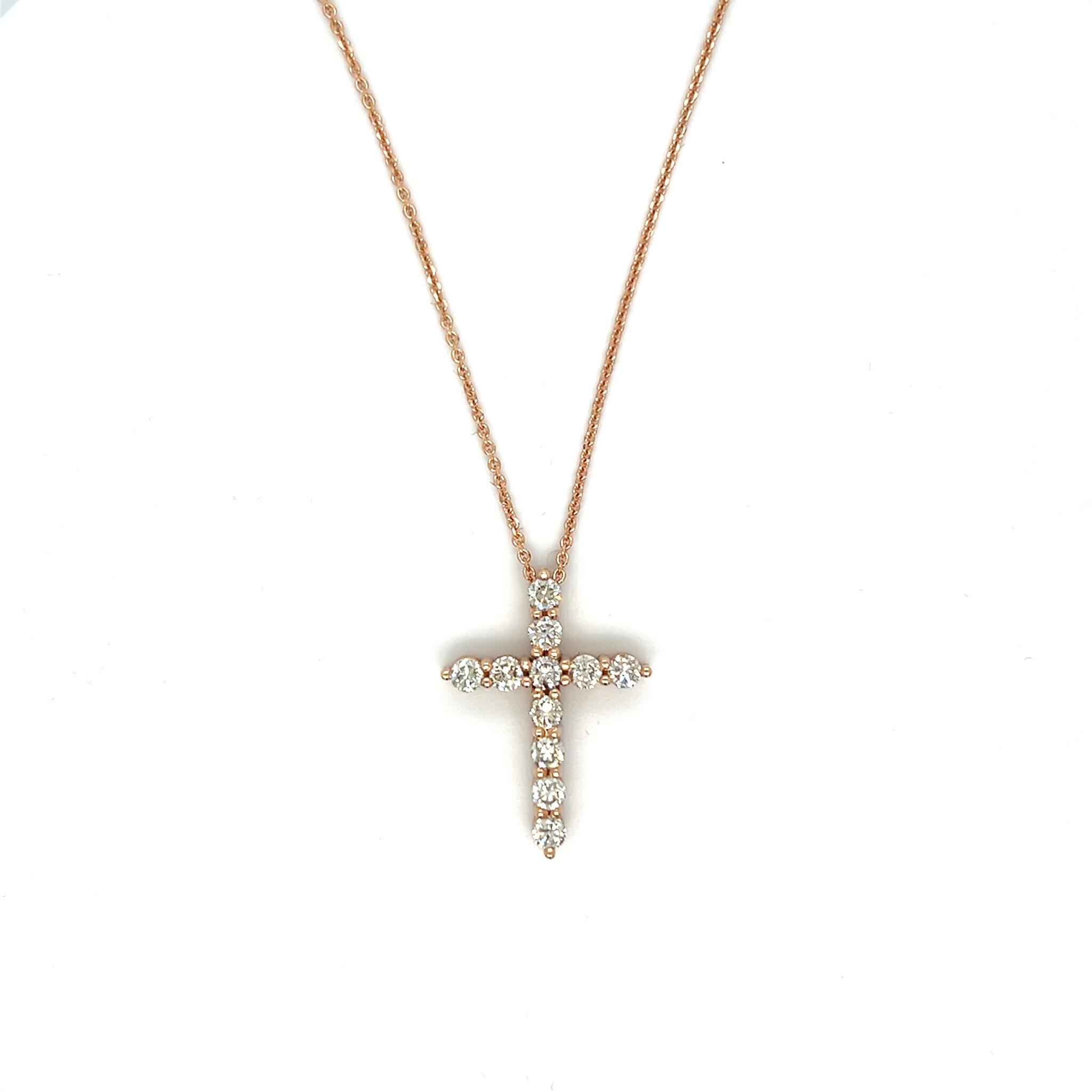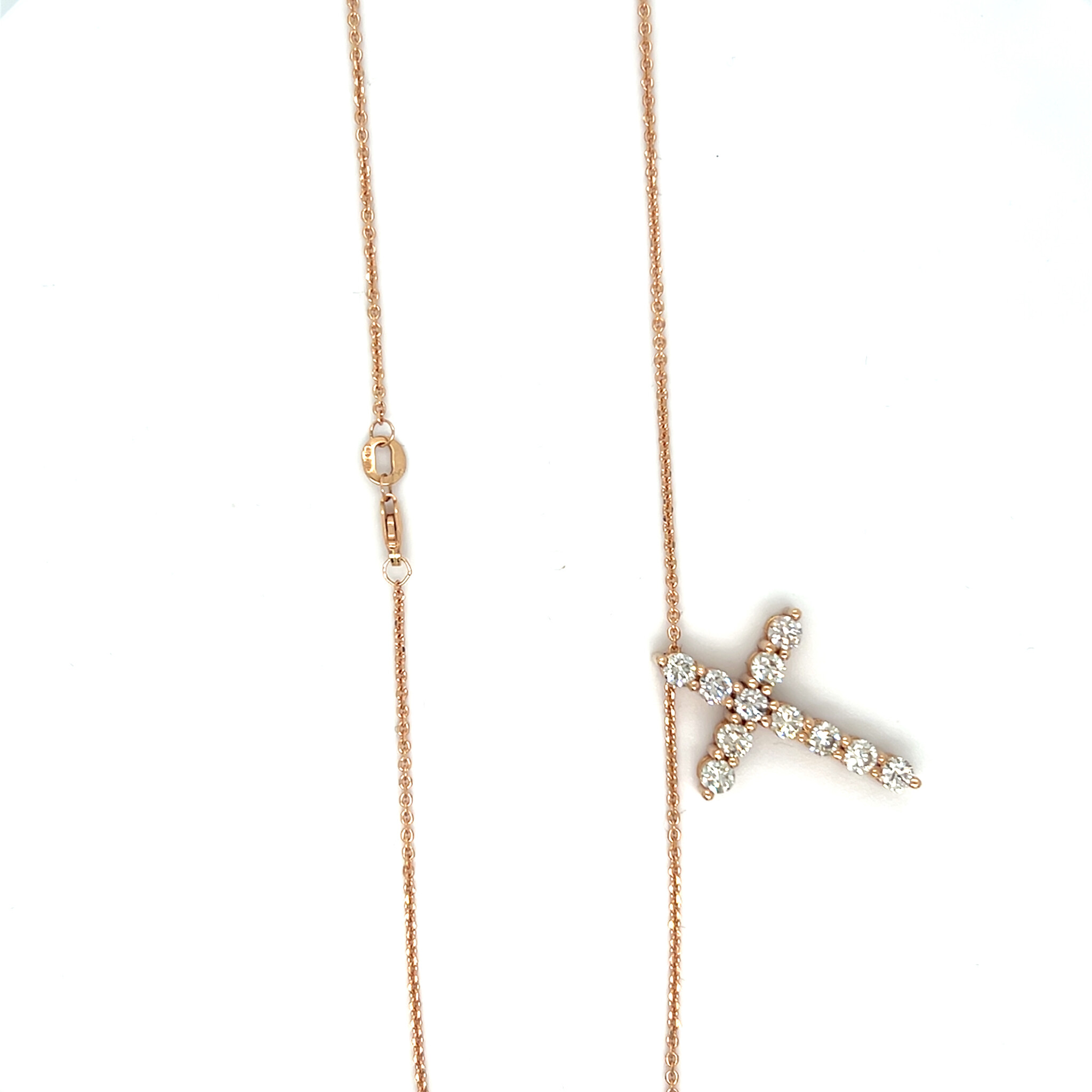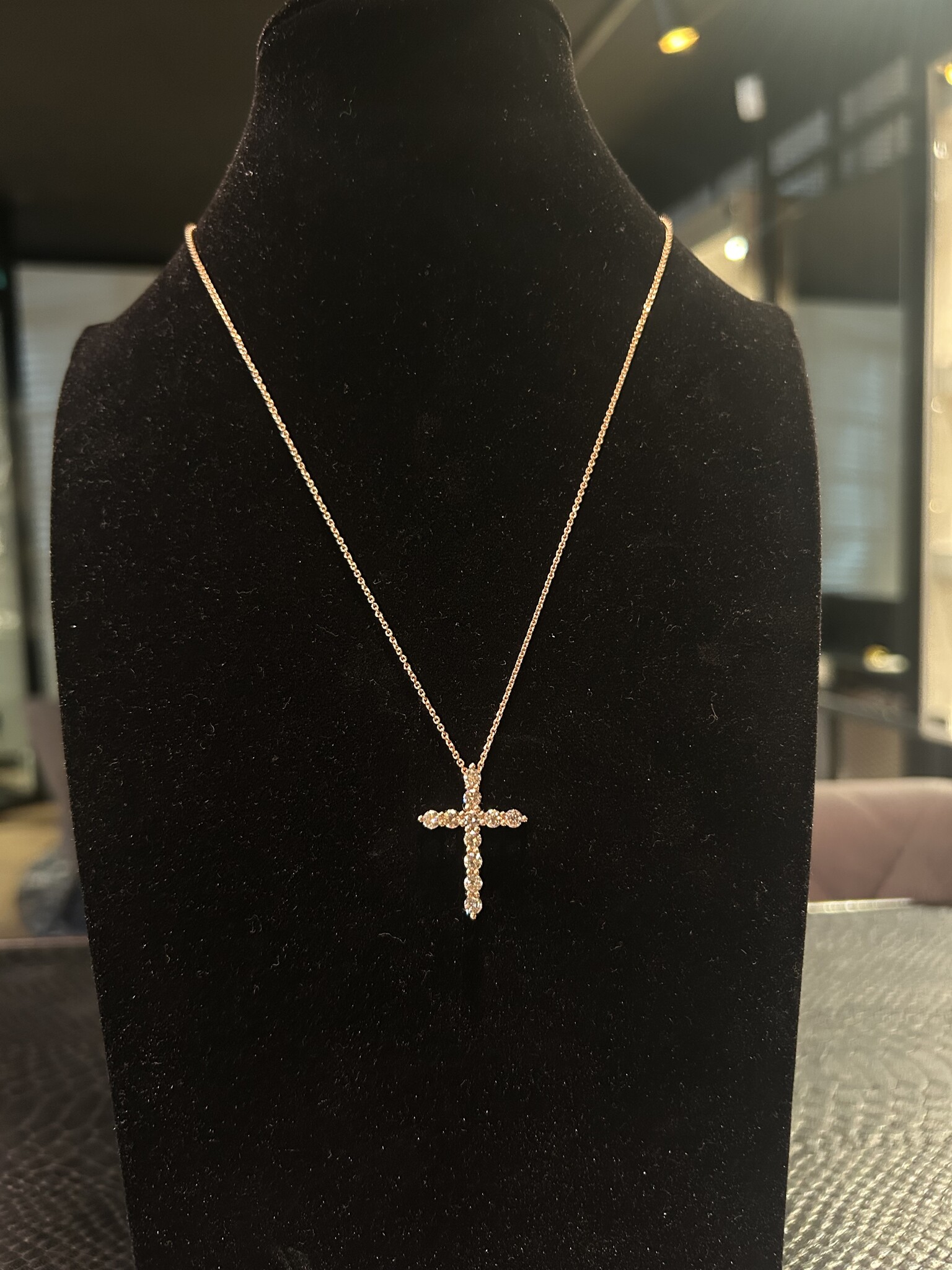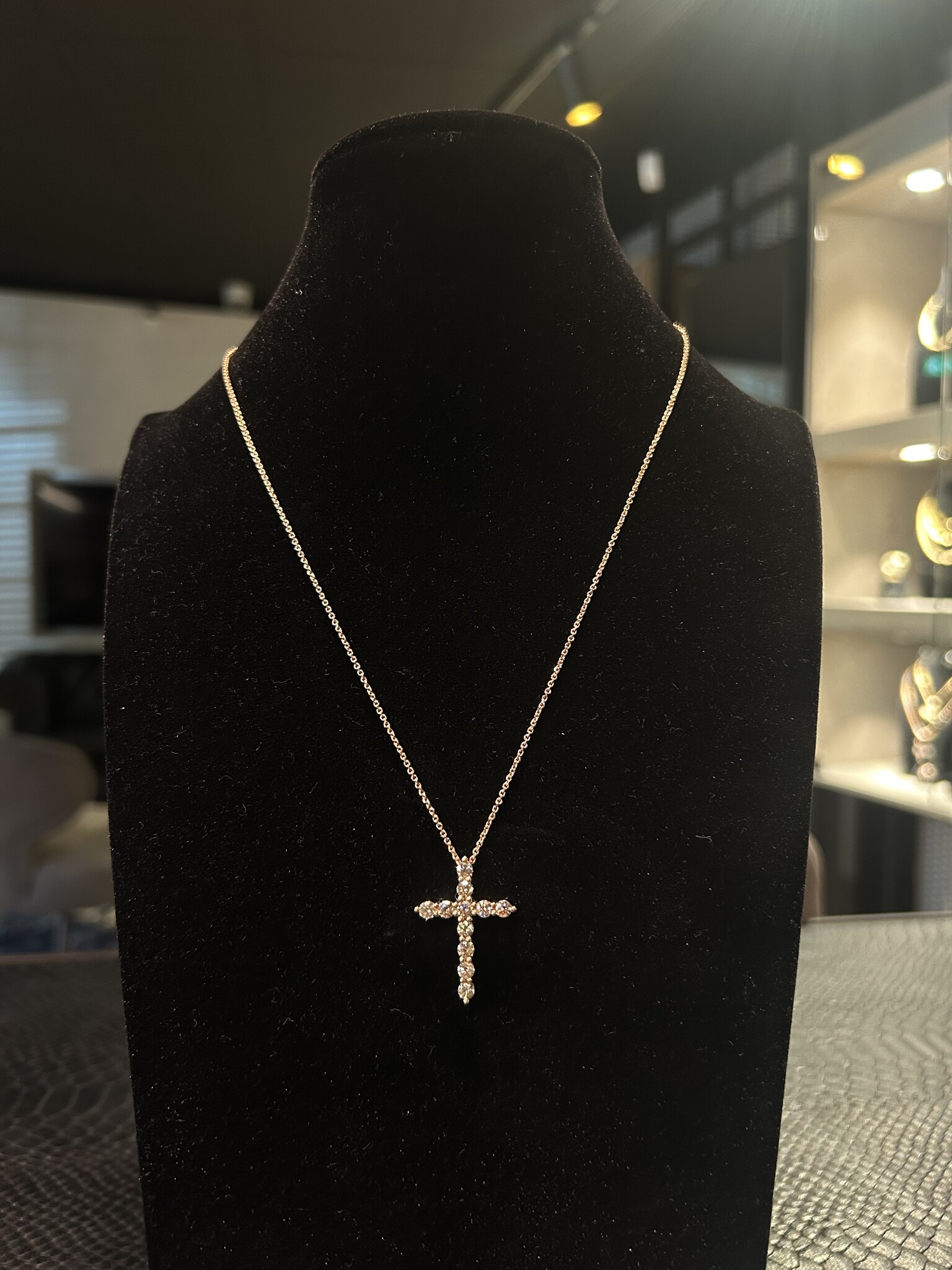 Ketting subtiele ankerchain met vaste hanger kruis bezet met diamanten roségoud