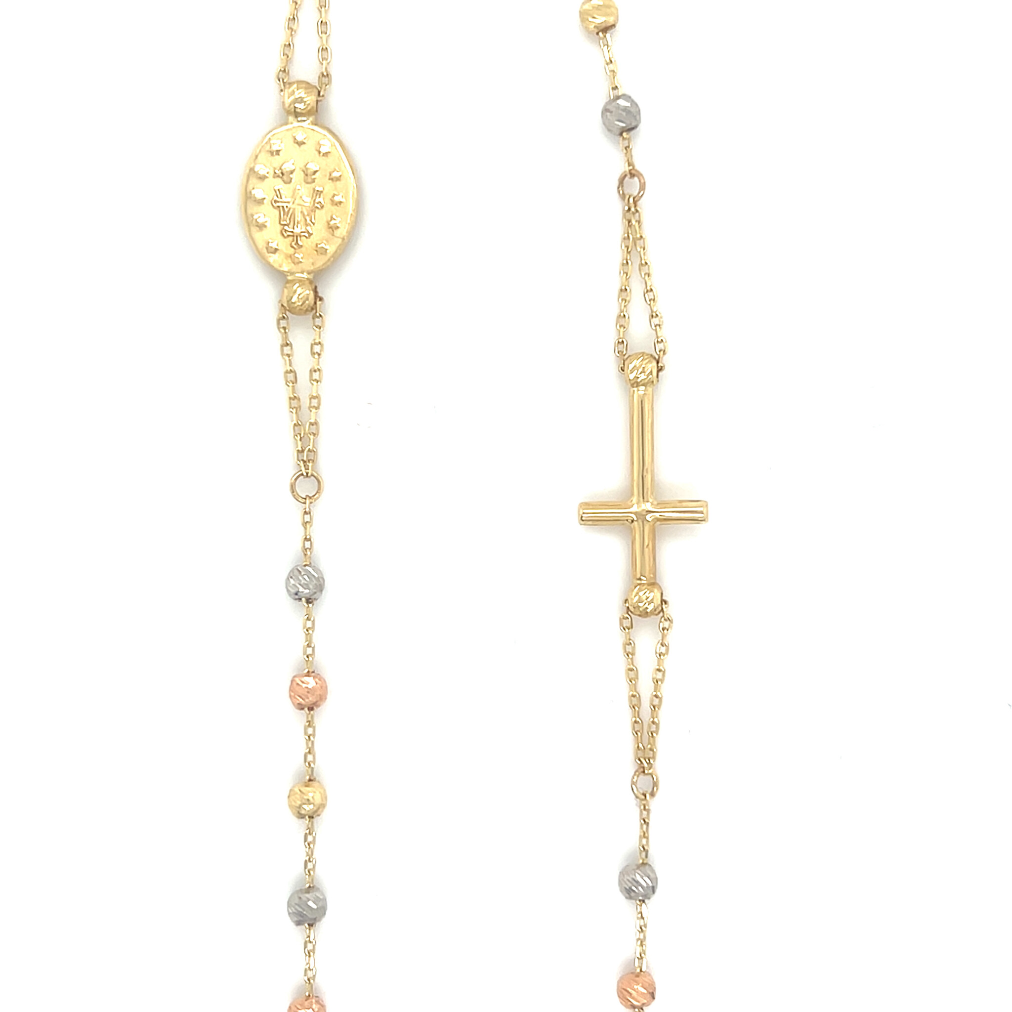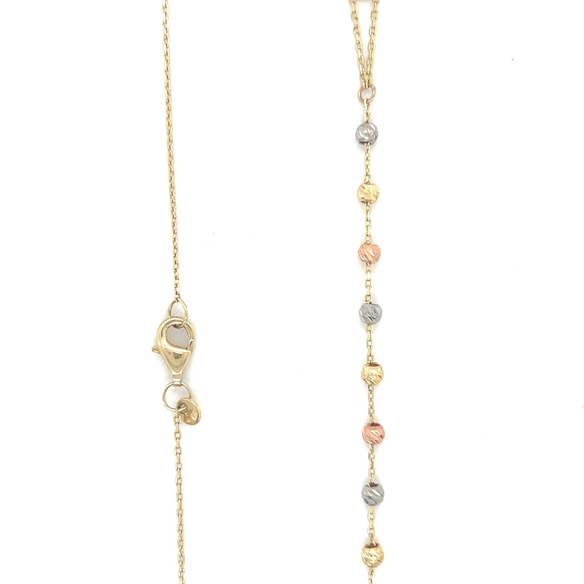Ketting tricolor gediamanteerde balletjes met anker schakel met kruis en maria