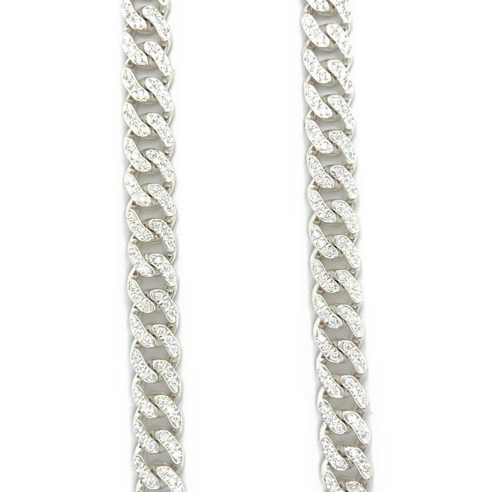 Ketting zilver Cuban link bezet met zirkonia's en clean kant 10 mm