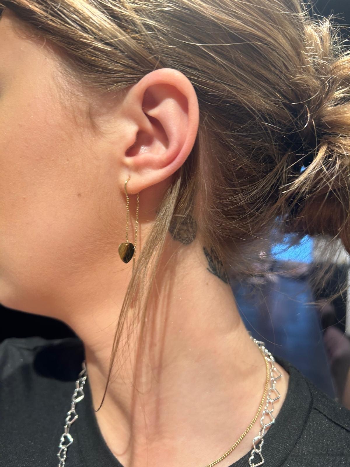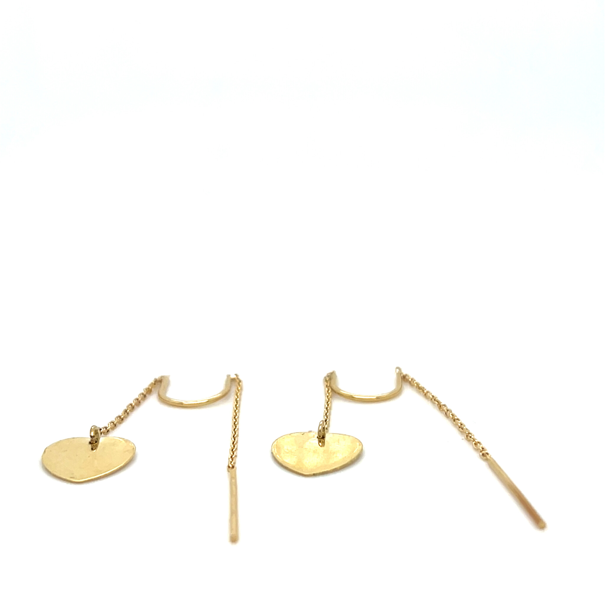 Oorbellen doorsteekmodel met hangend hartje en staafje aan kettinkje