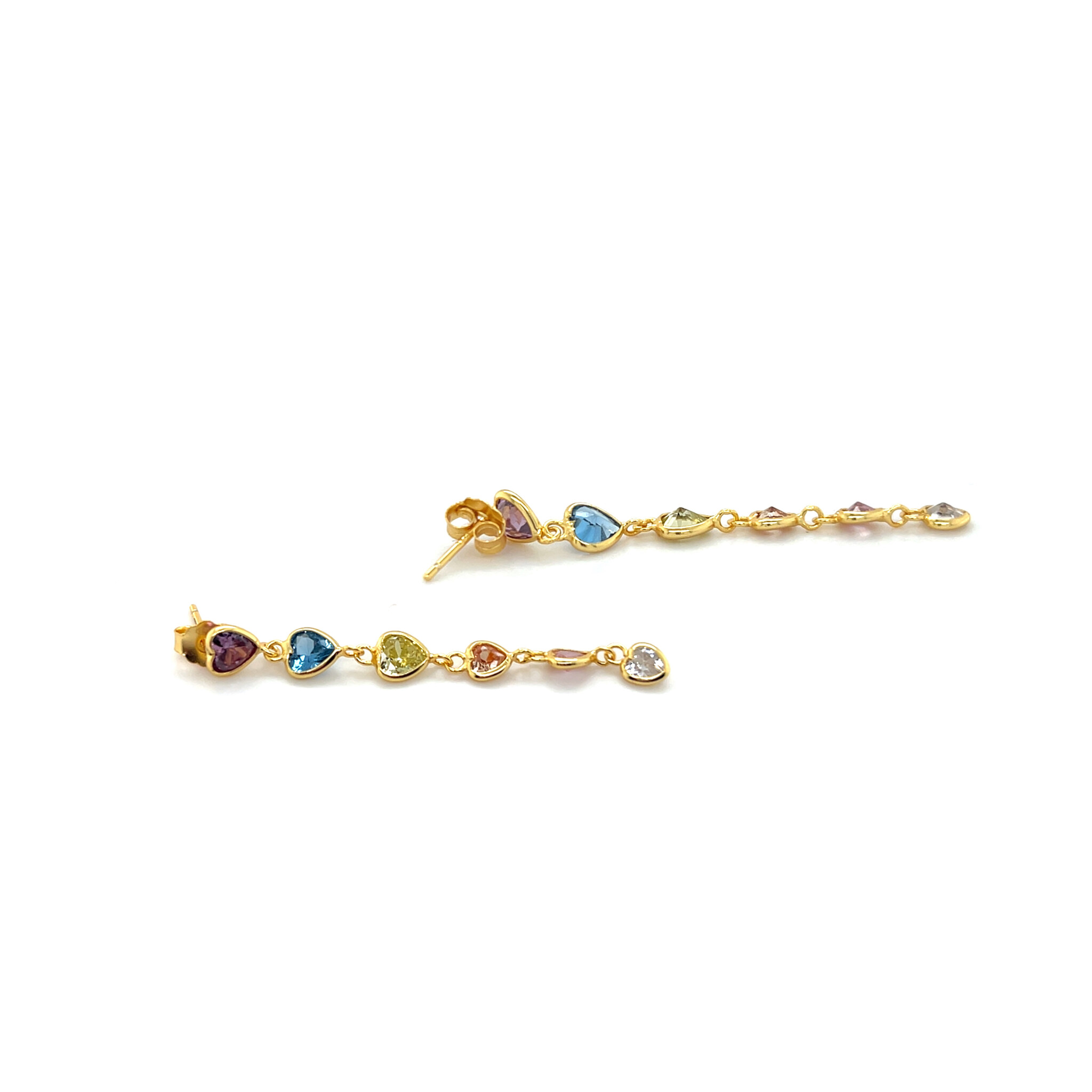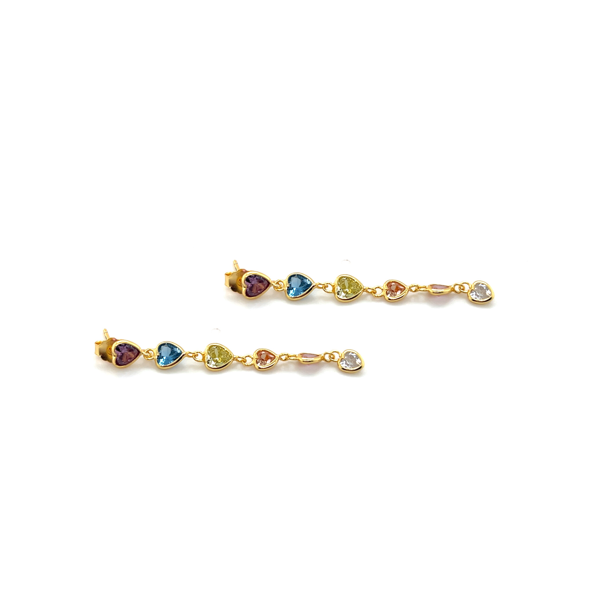 Oorbellen gold-plated met gekleurde hart zirkonia