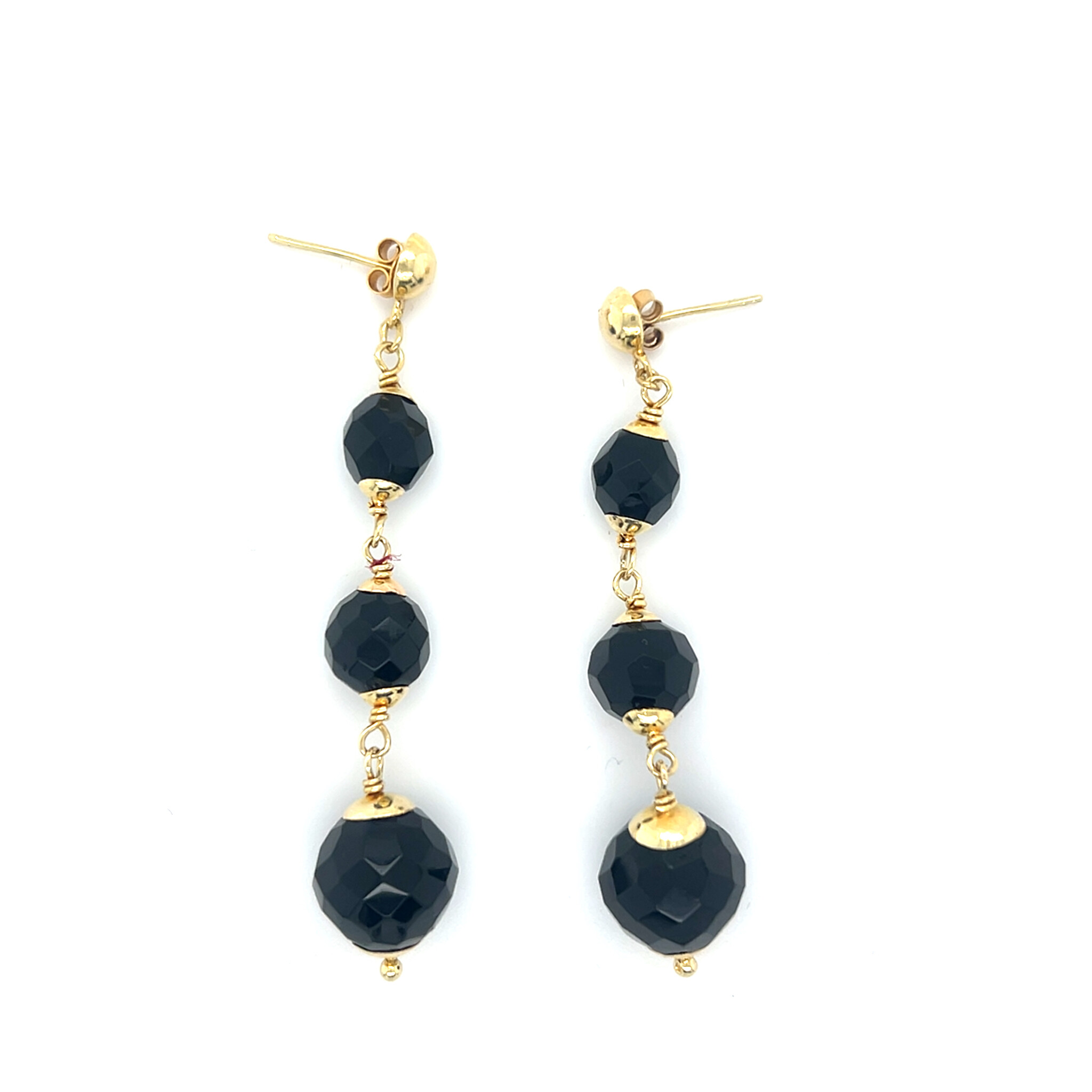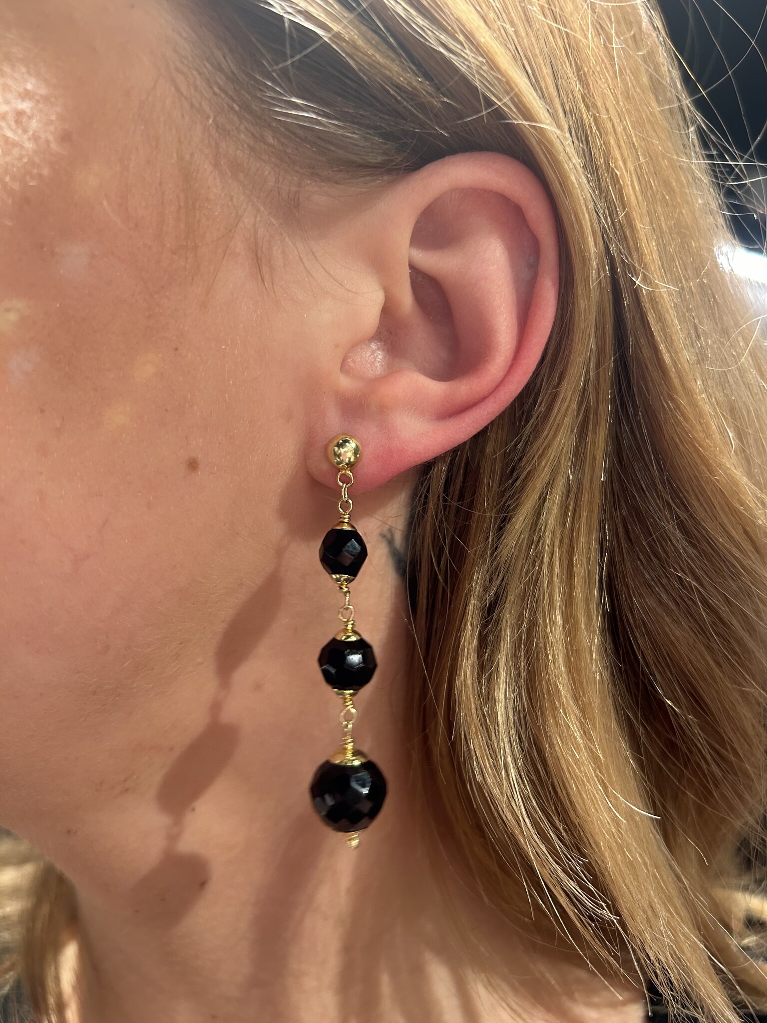 Oorbellen hangende zwarte Ogri Ai kralen in drie verschillende maten
