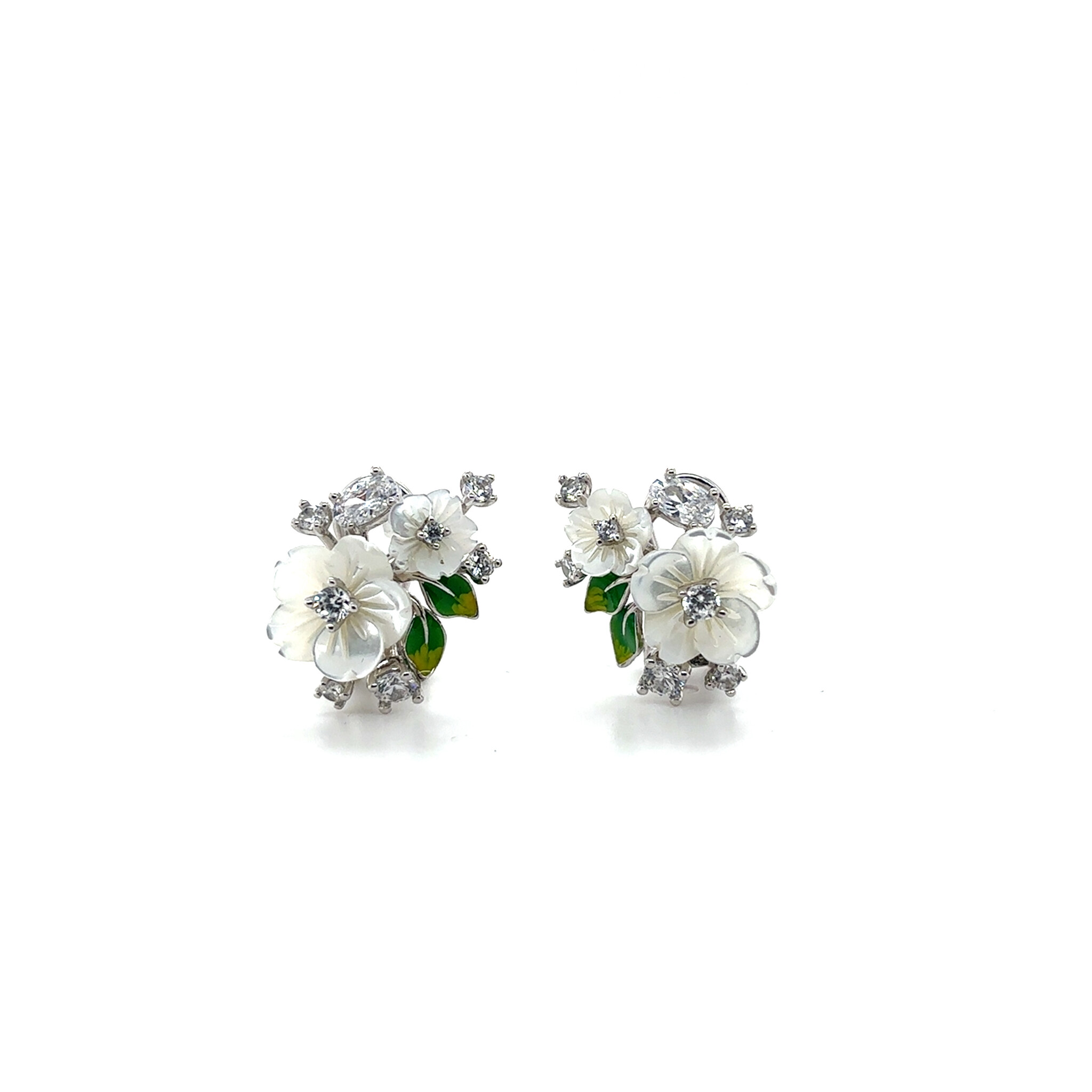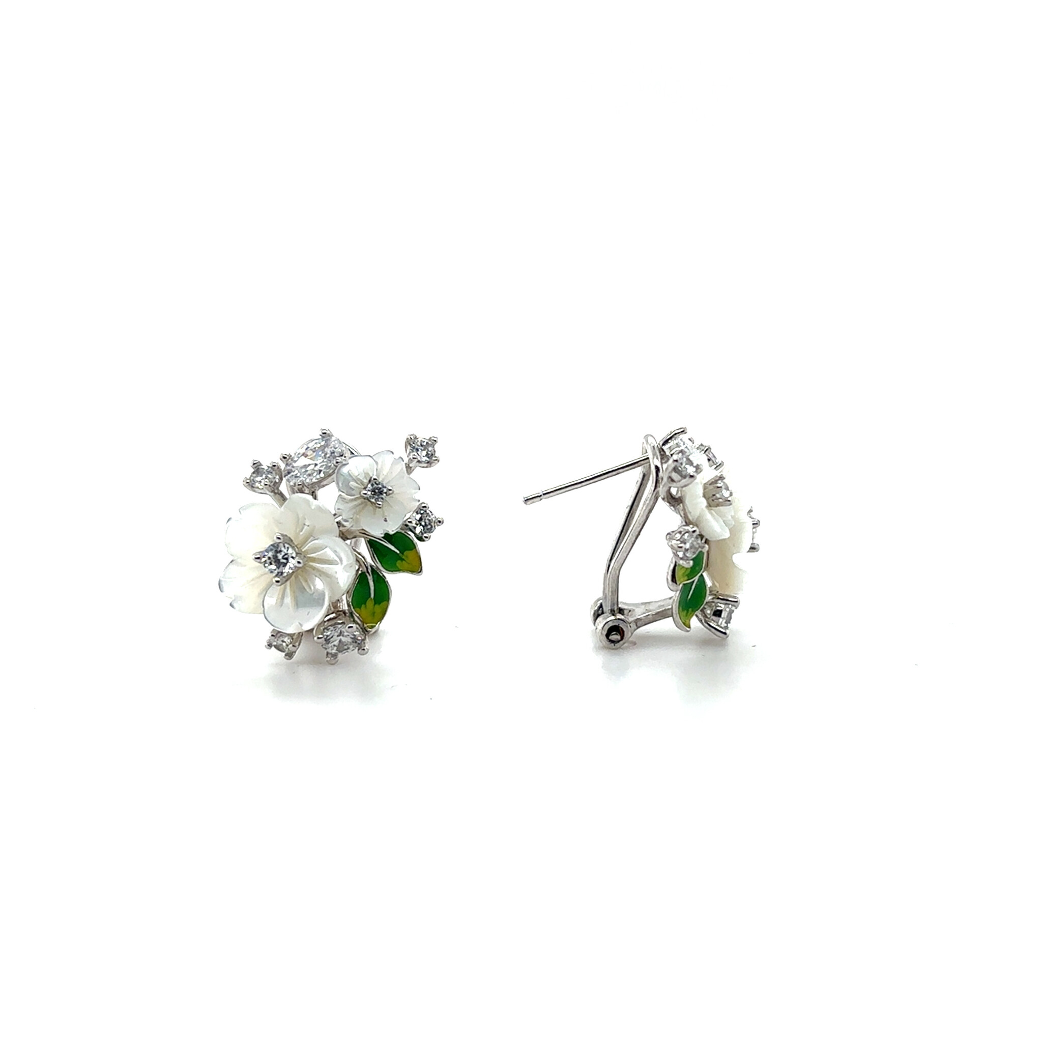 Oorbellen met bloemen groene blaadjes en zirkonia stenen