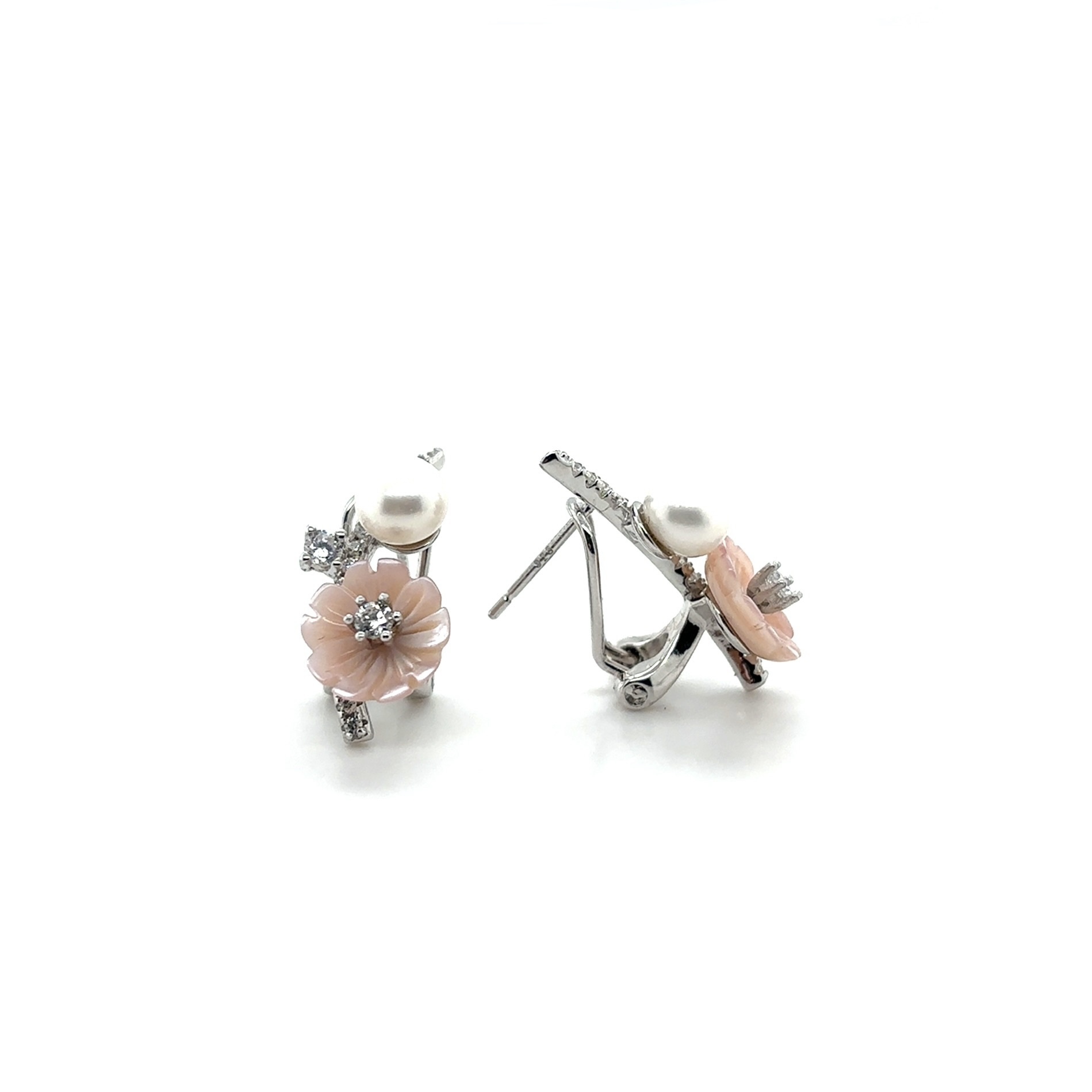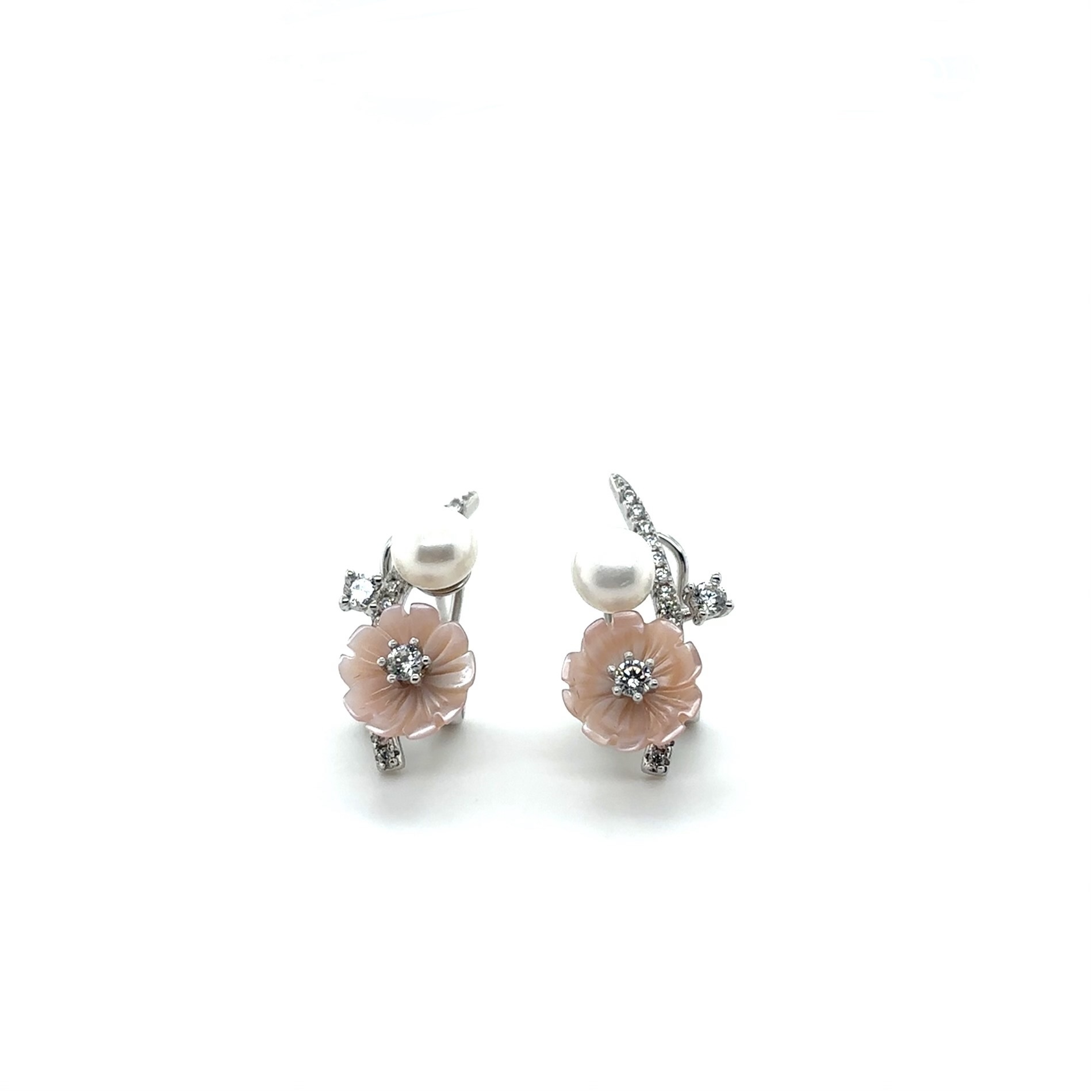 Oorbellen met pastel kleur bloem parel en zirkonia stenen