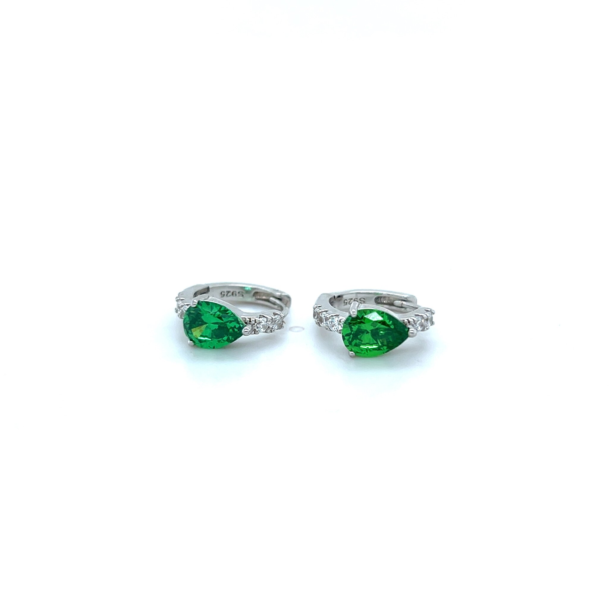 Oorbellen ringen met groene druppel zirkonia en witte zirkonia's