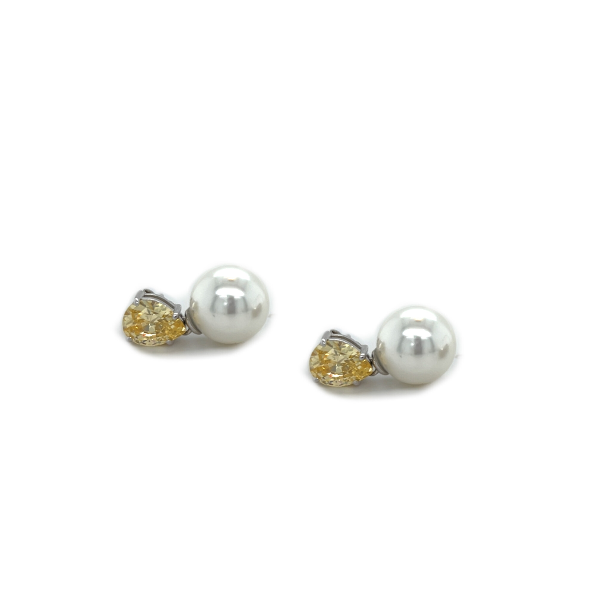 Oorbellen stekers parel met druppelvormige, gele zirkonia