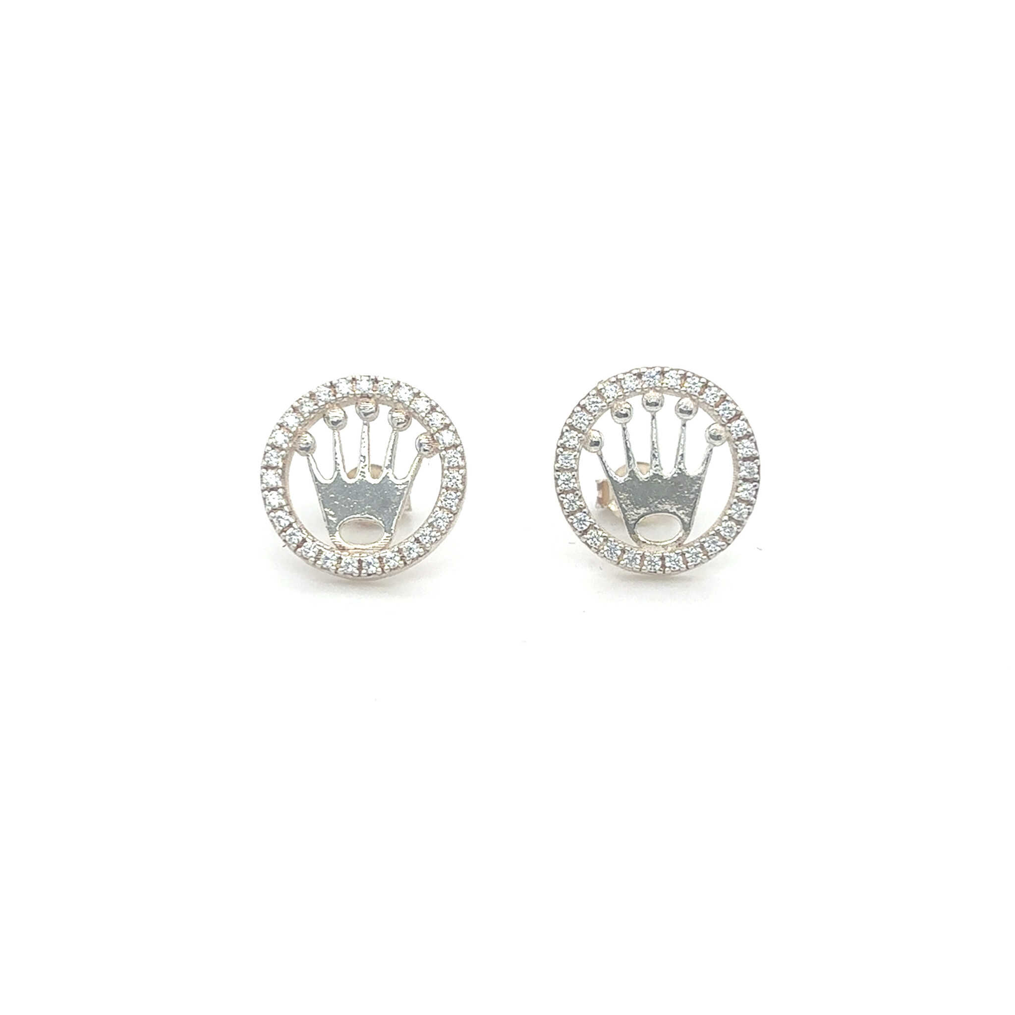 Oorbellen zilver rond rolekskroontje met zirkonia's