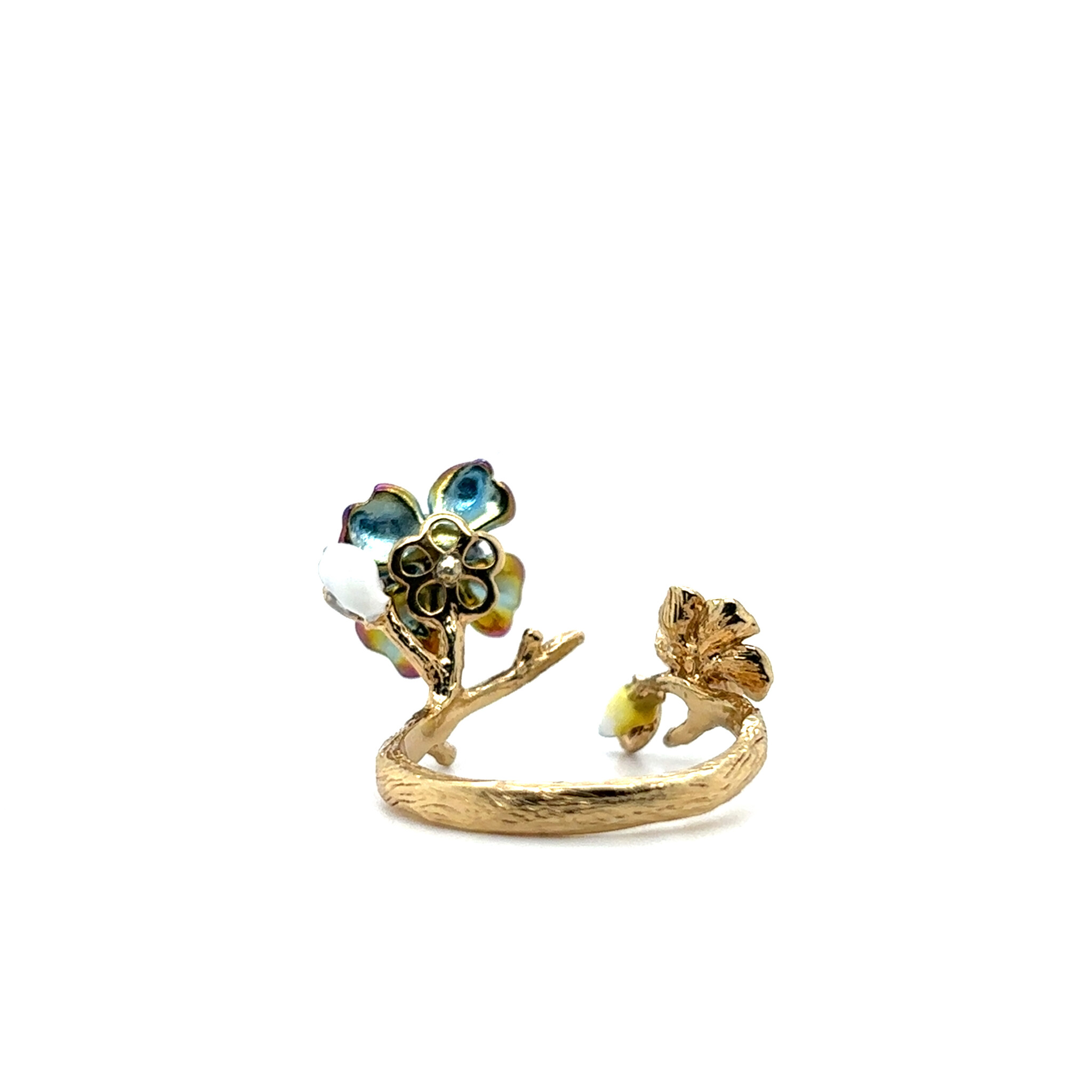 Ring met gekleurde bloem en gekleure zirkonia stenen