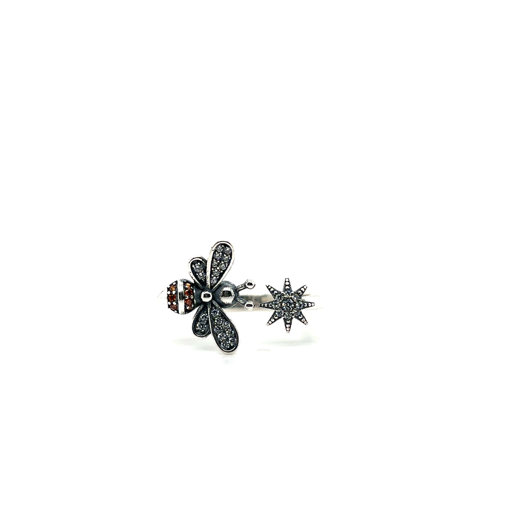Ring met gekleurde zirkonia stenen  in bij vorm