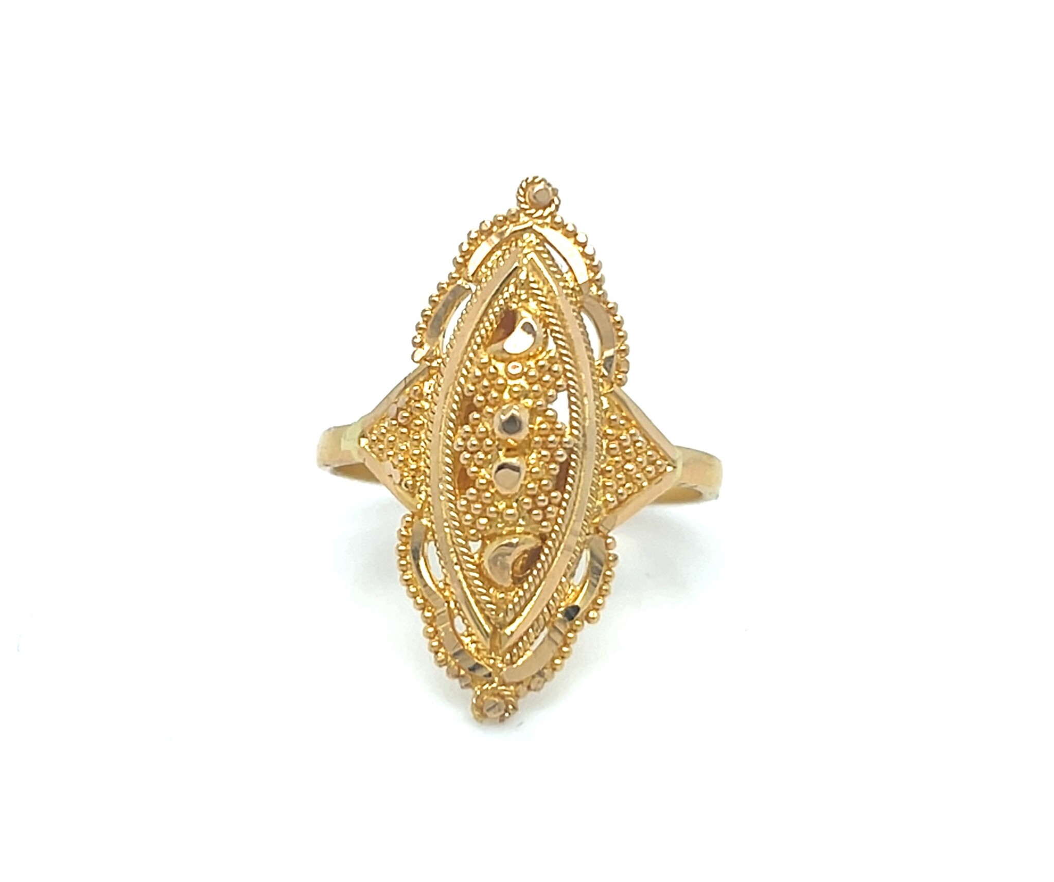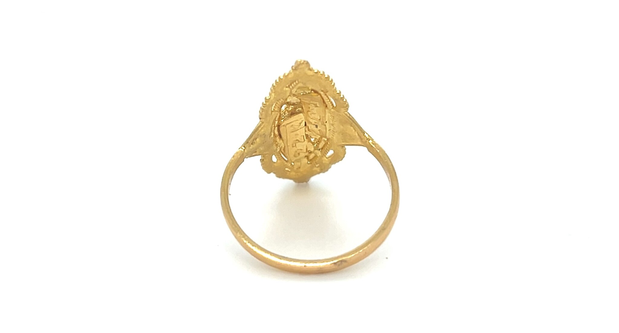 Ring met langwerpig gedetailleerd bewerkt ornament