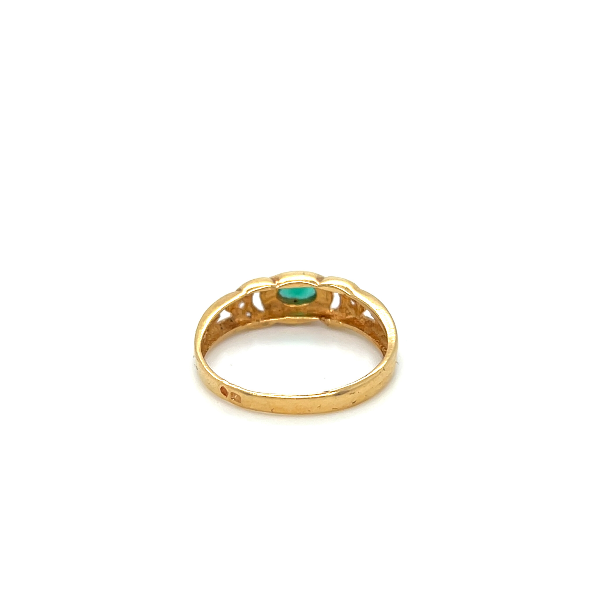 Ring met opengewerkte scheen bezet met groene steen en zirkonia's
