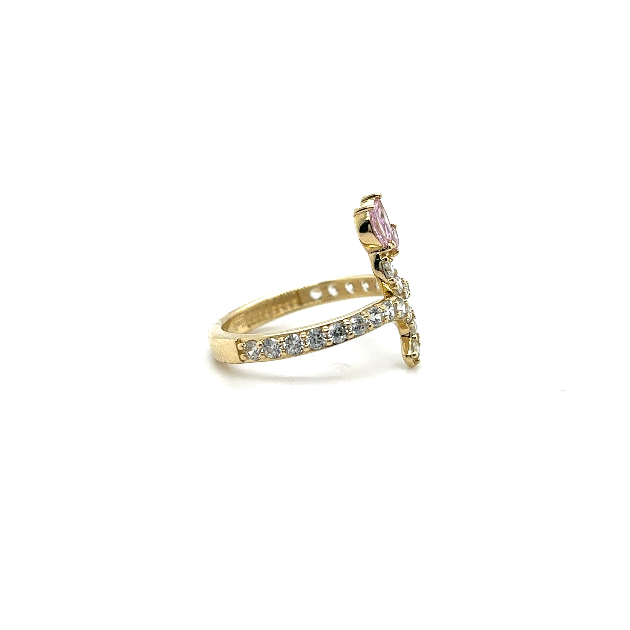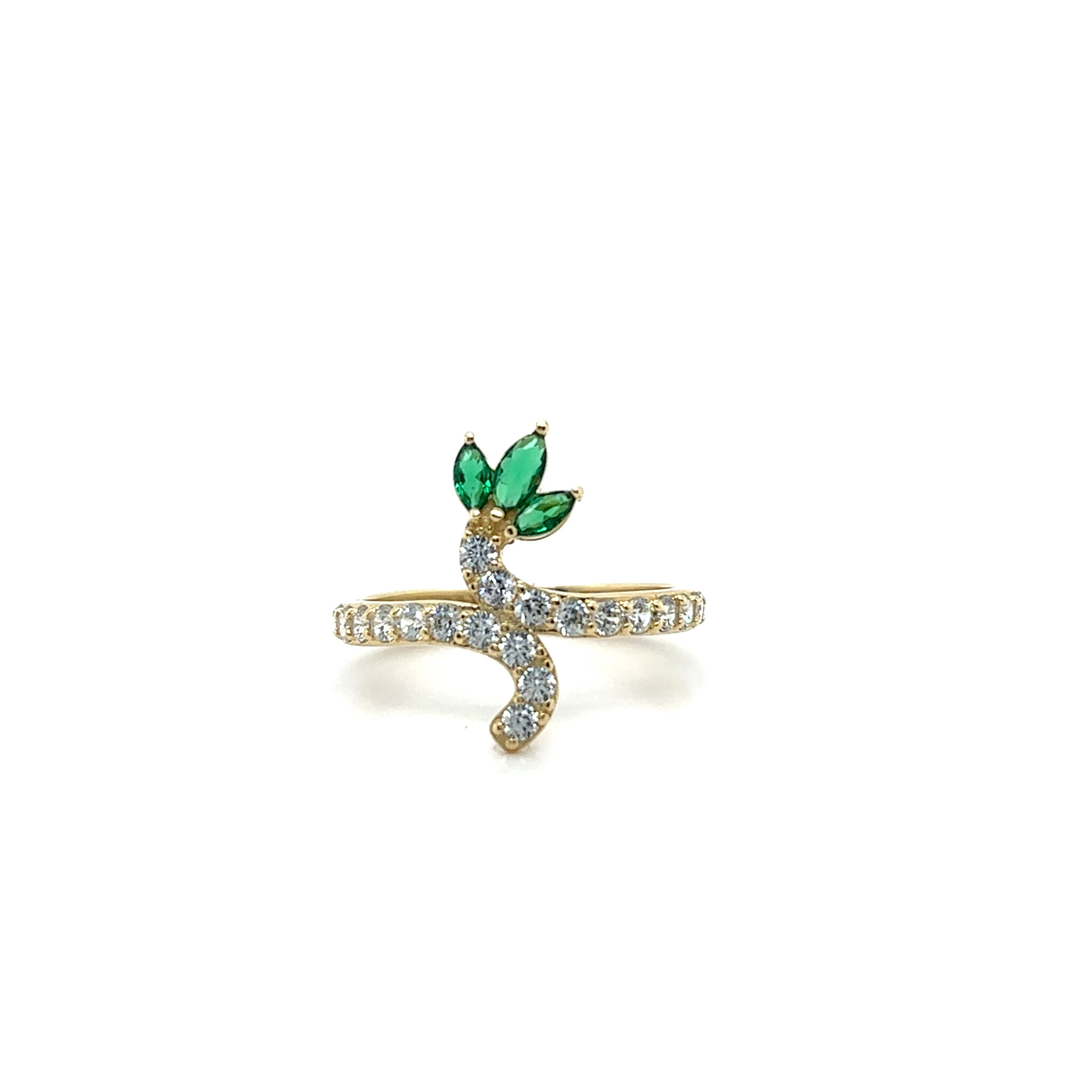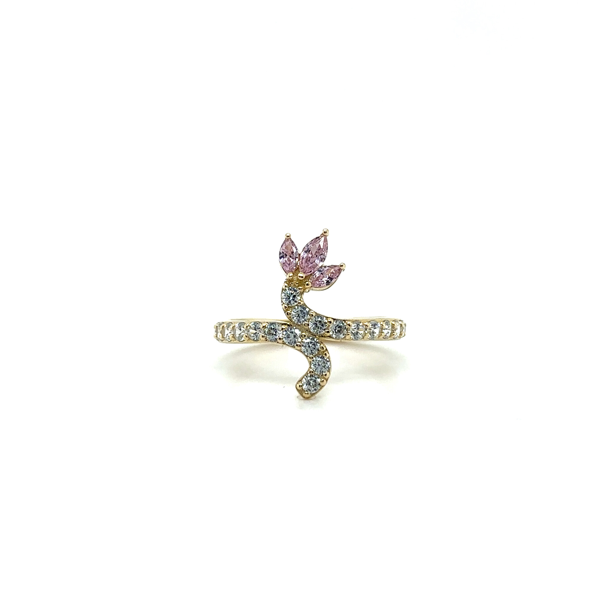 Ring met zirkonia en gekleurde vorm met 3 marquise zirkonia's