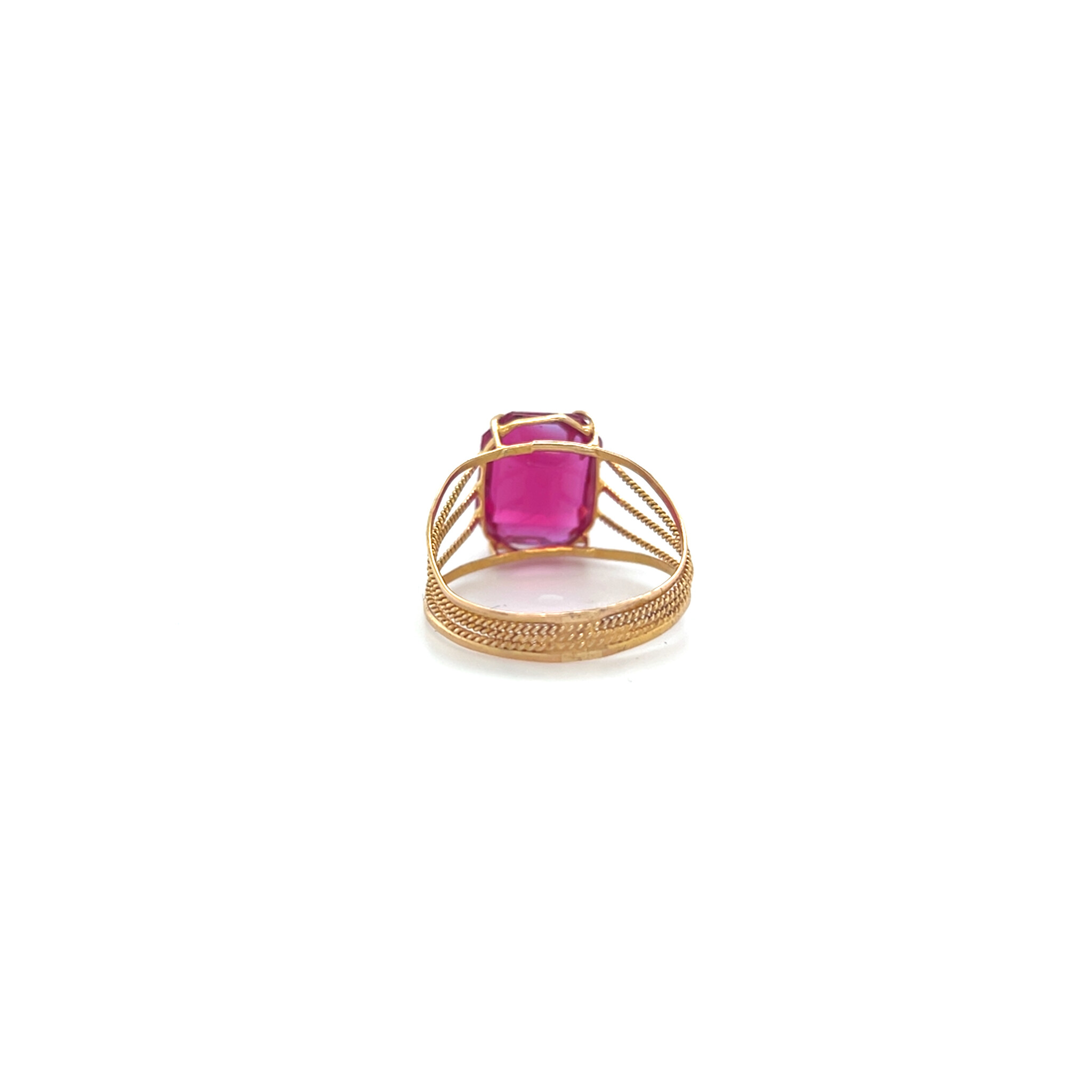 Ring opengewerkte scheen met fuchsia rood rechthoekige steen