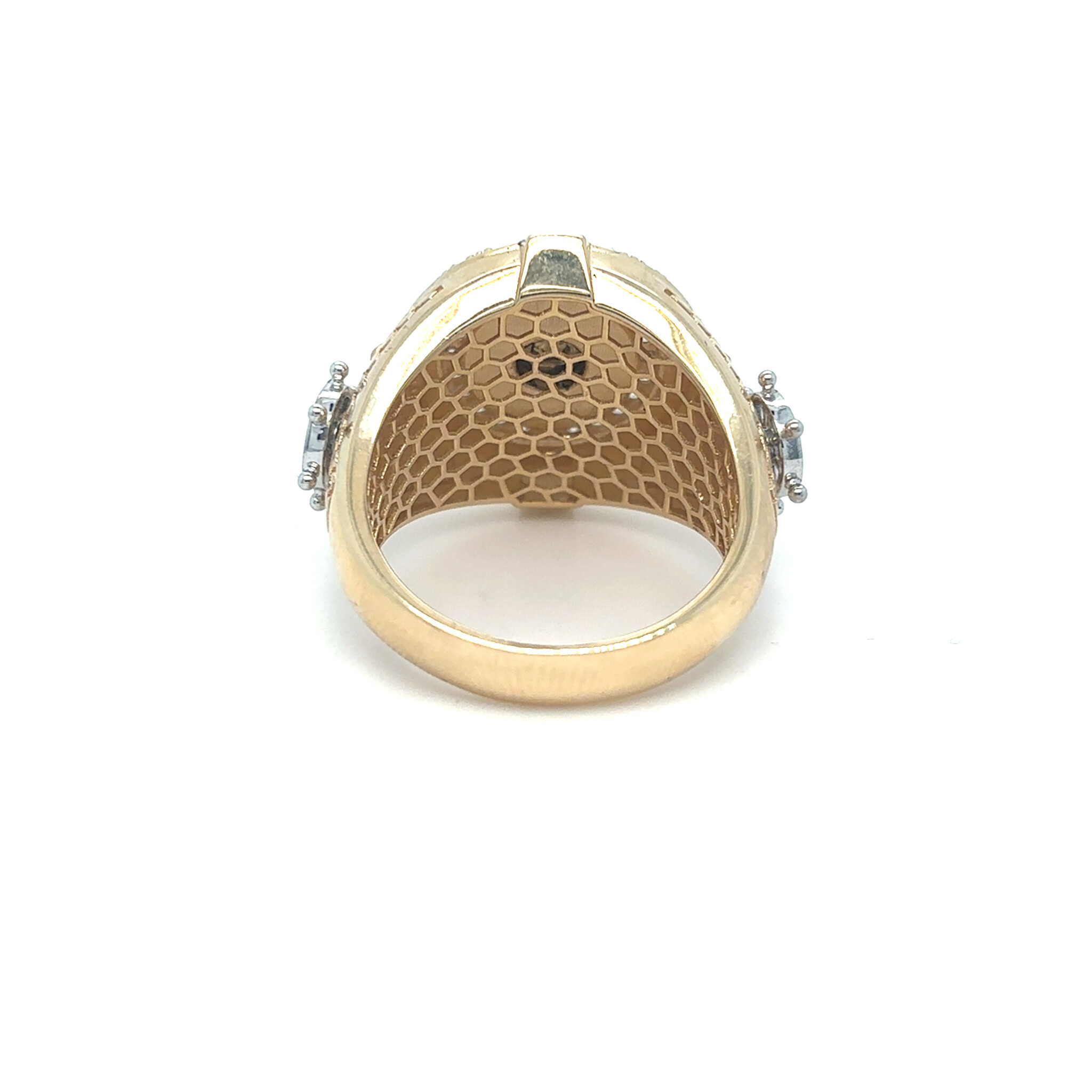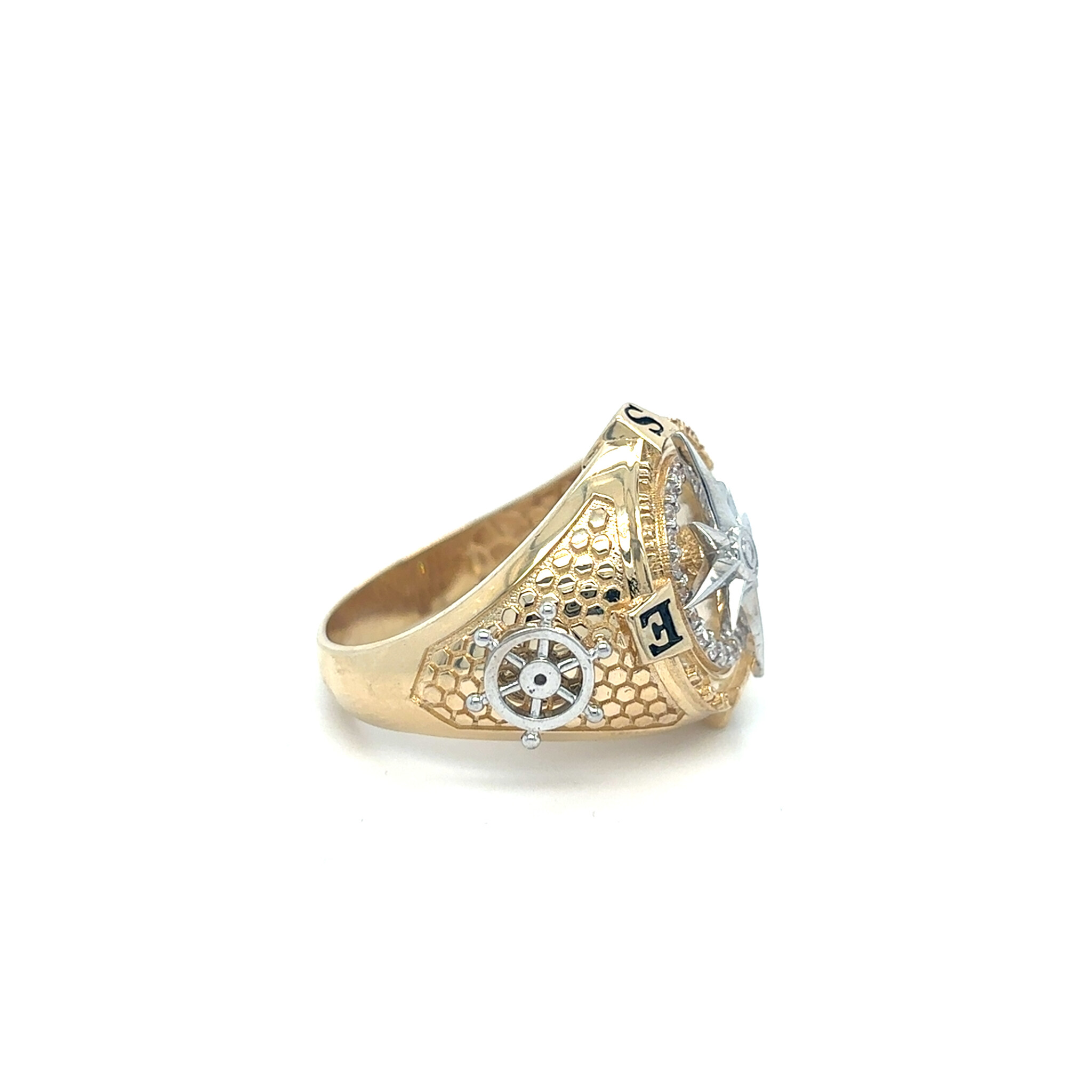 Ring zegel met kompas bezet met zirkonia's bicolor
